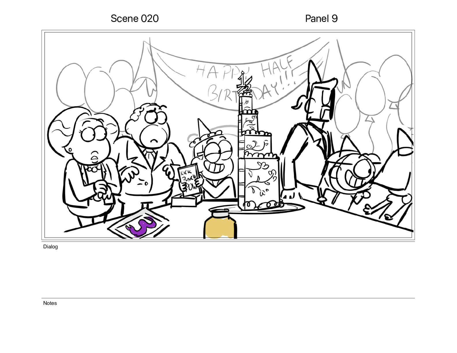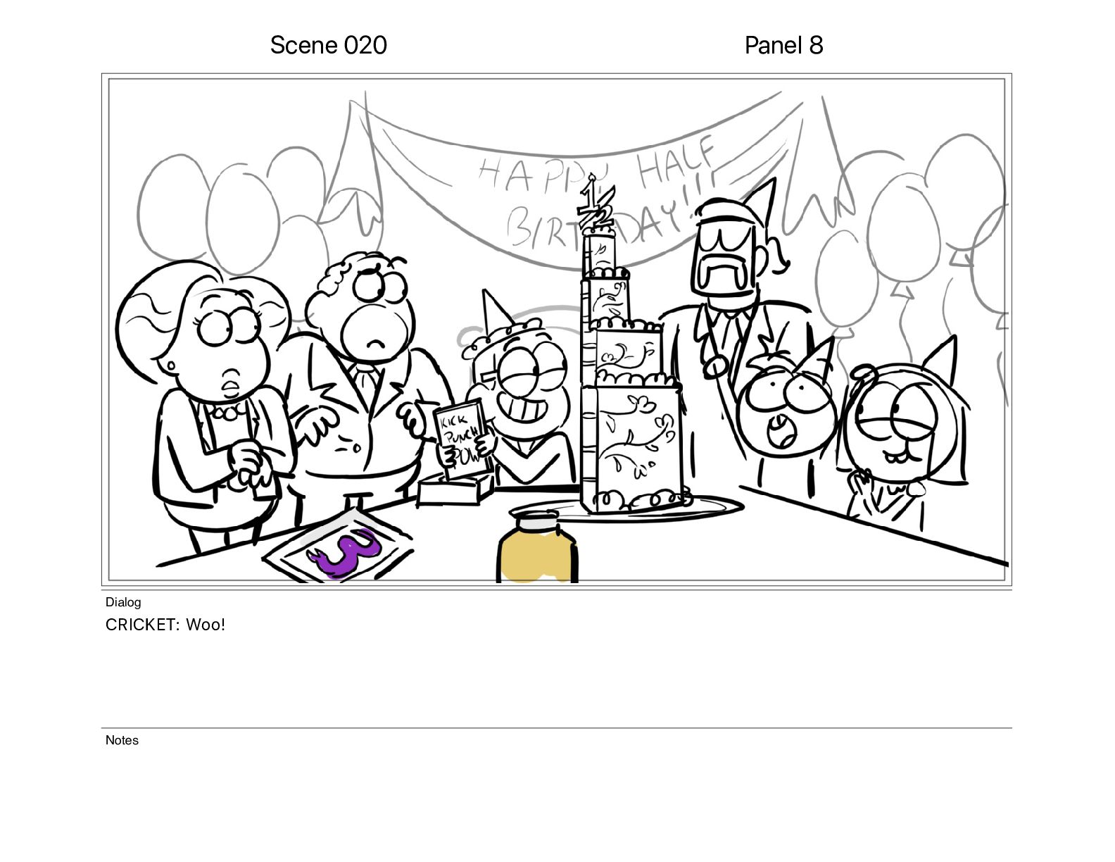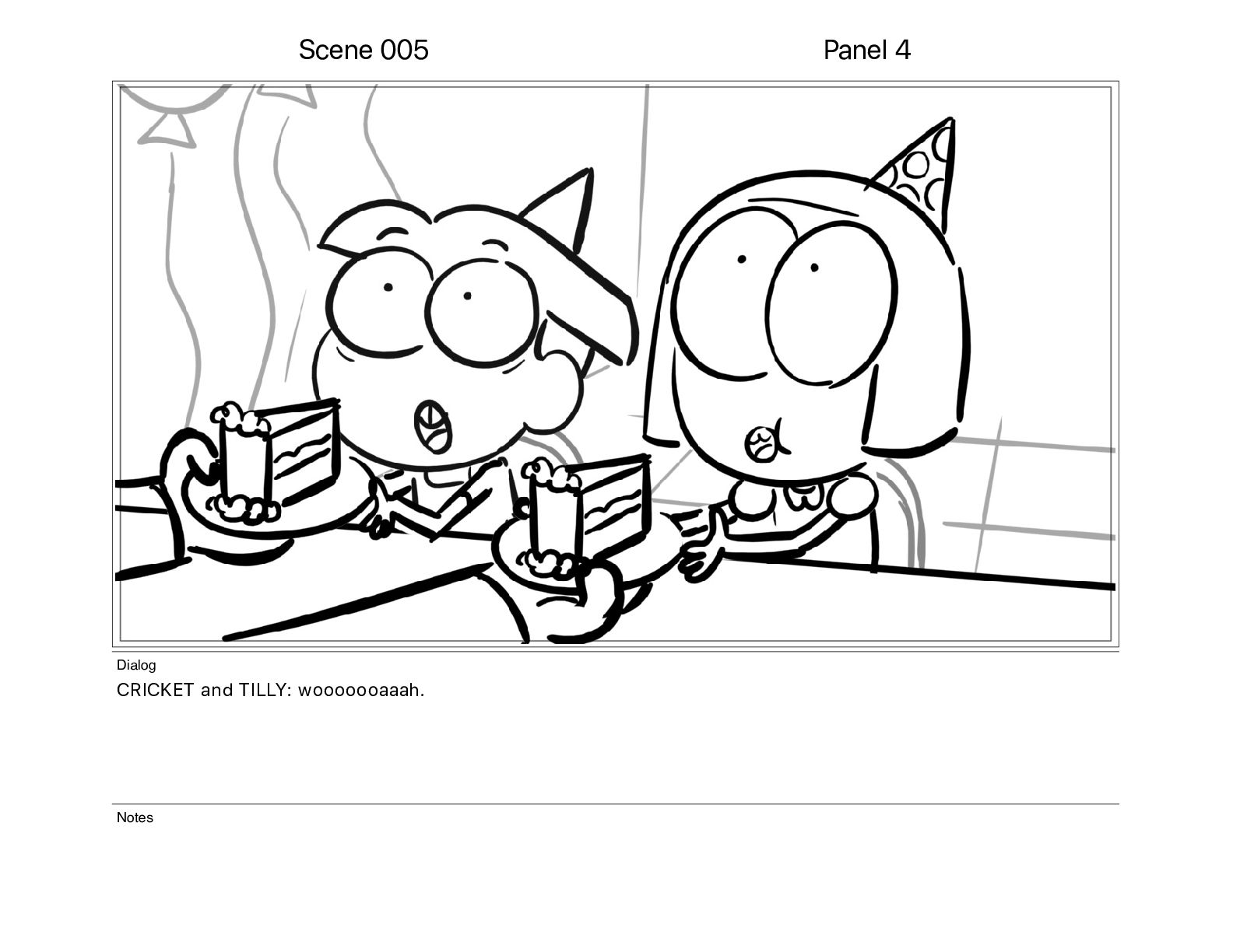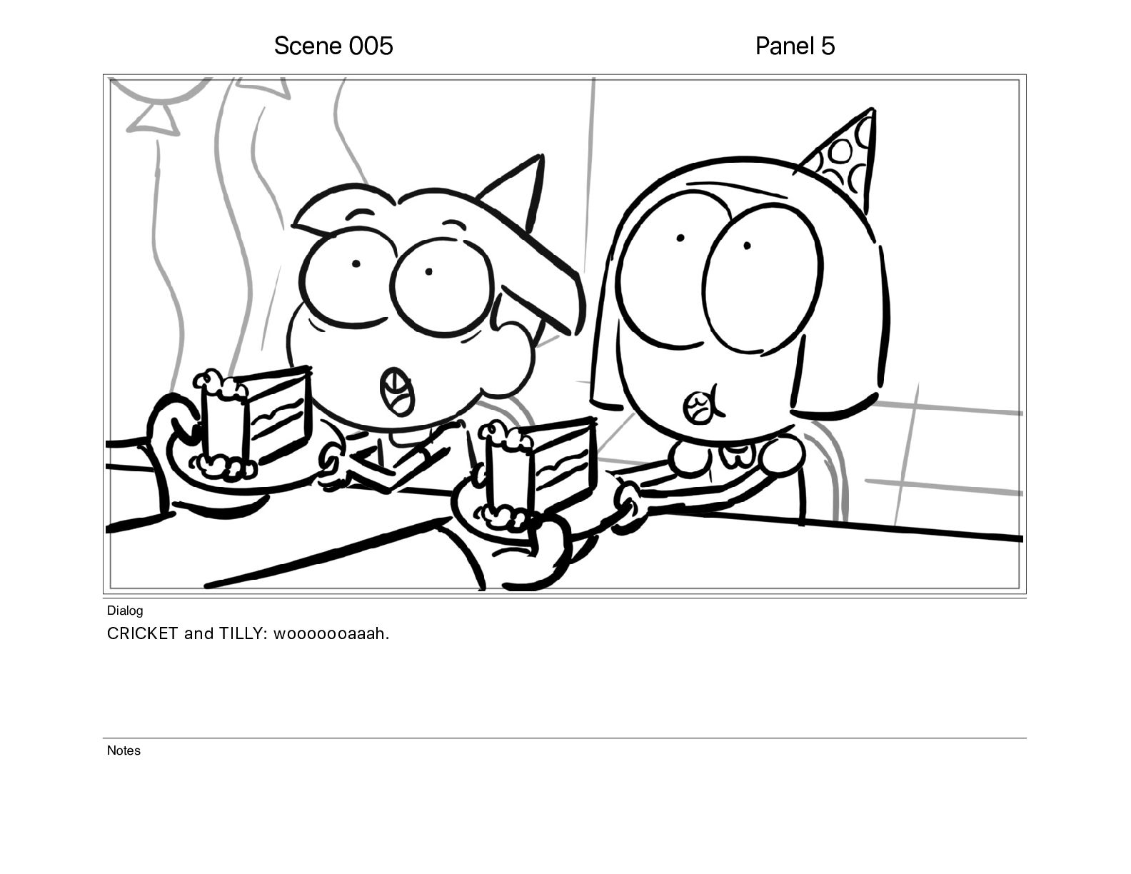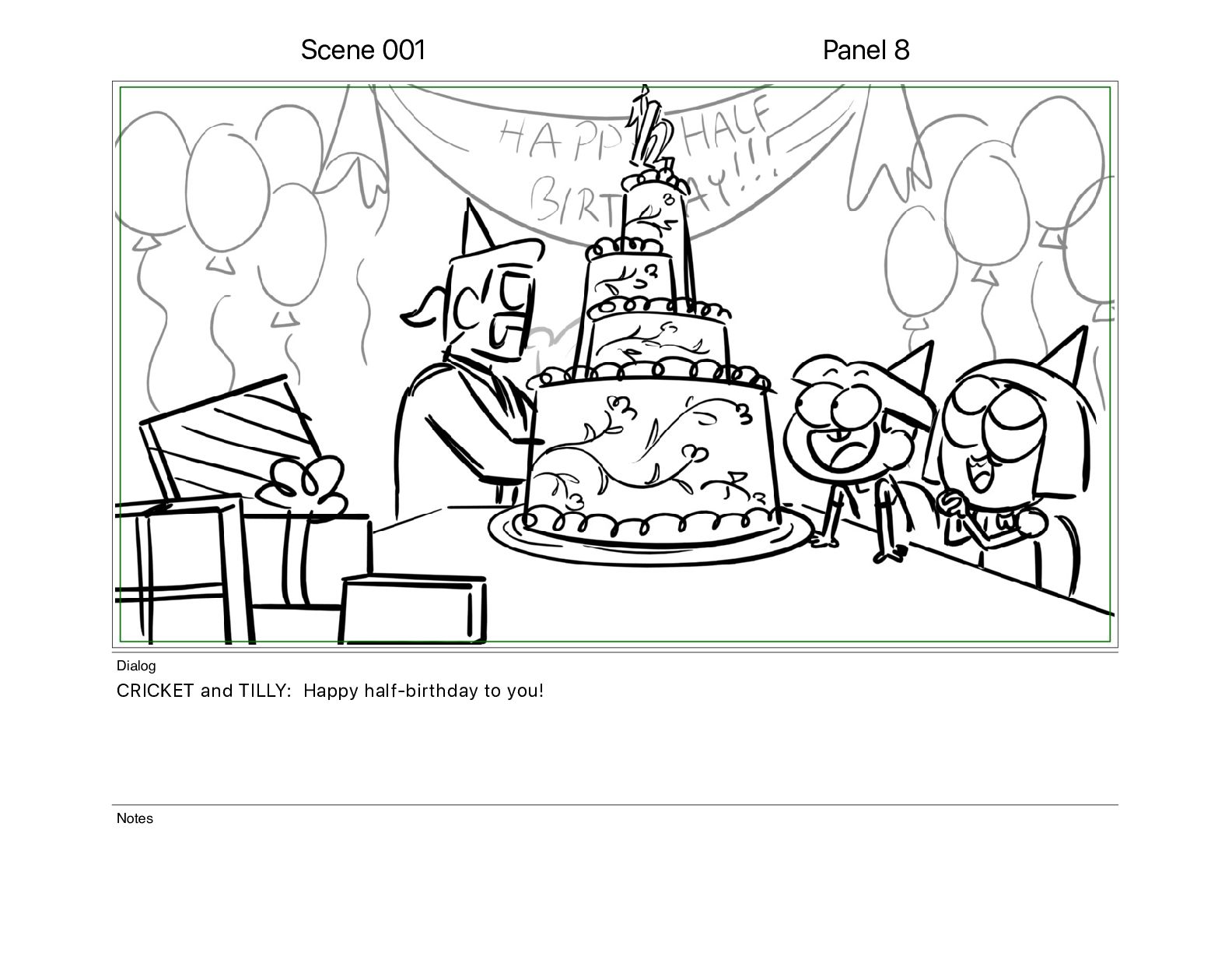 Scene 001 Panel 8 Dialog CRICKET and TILLY: Happy half-birthday