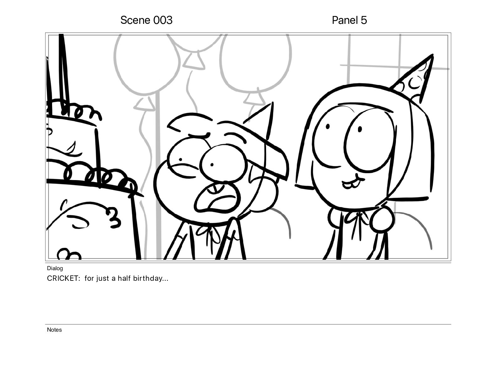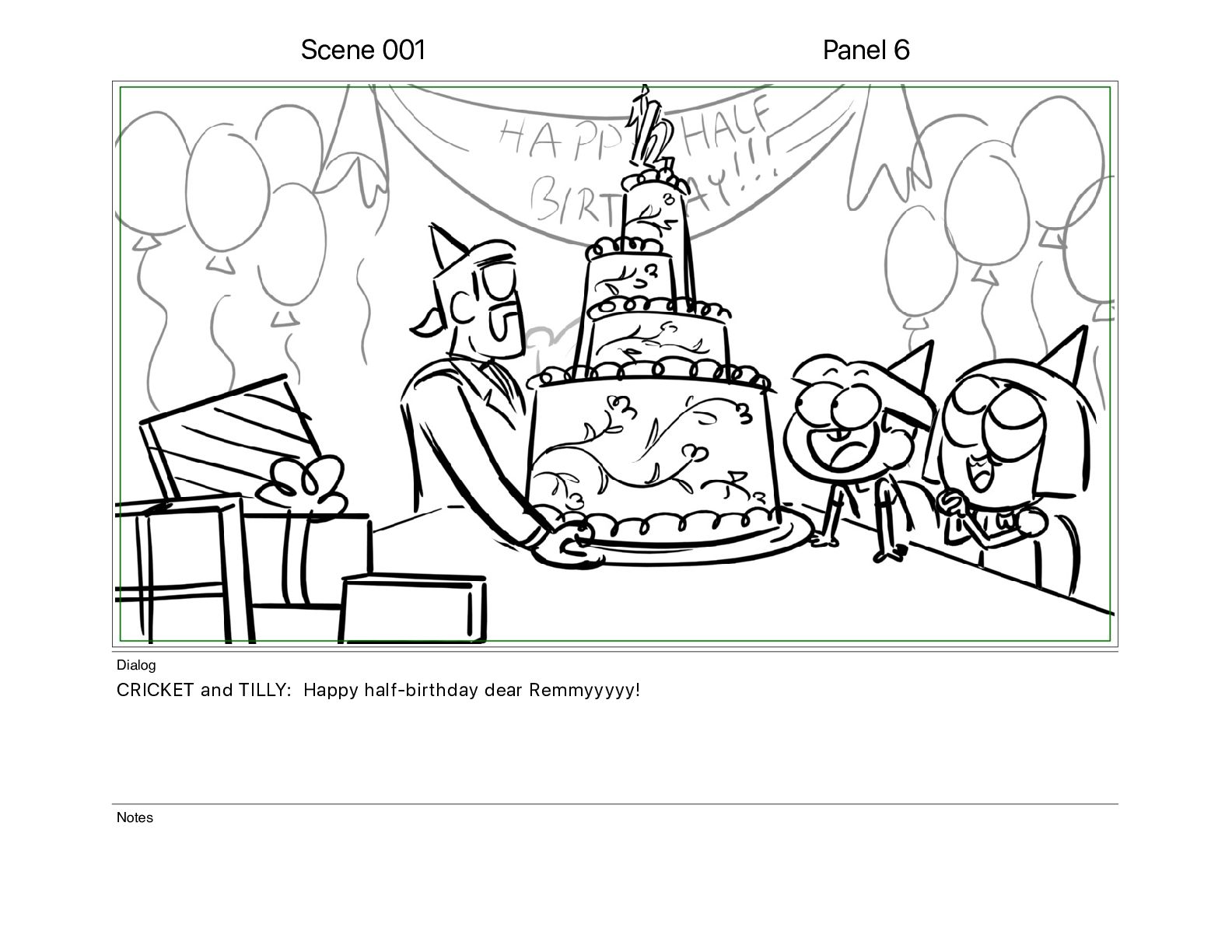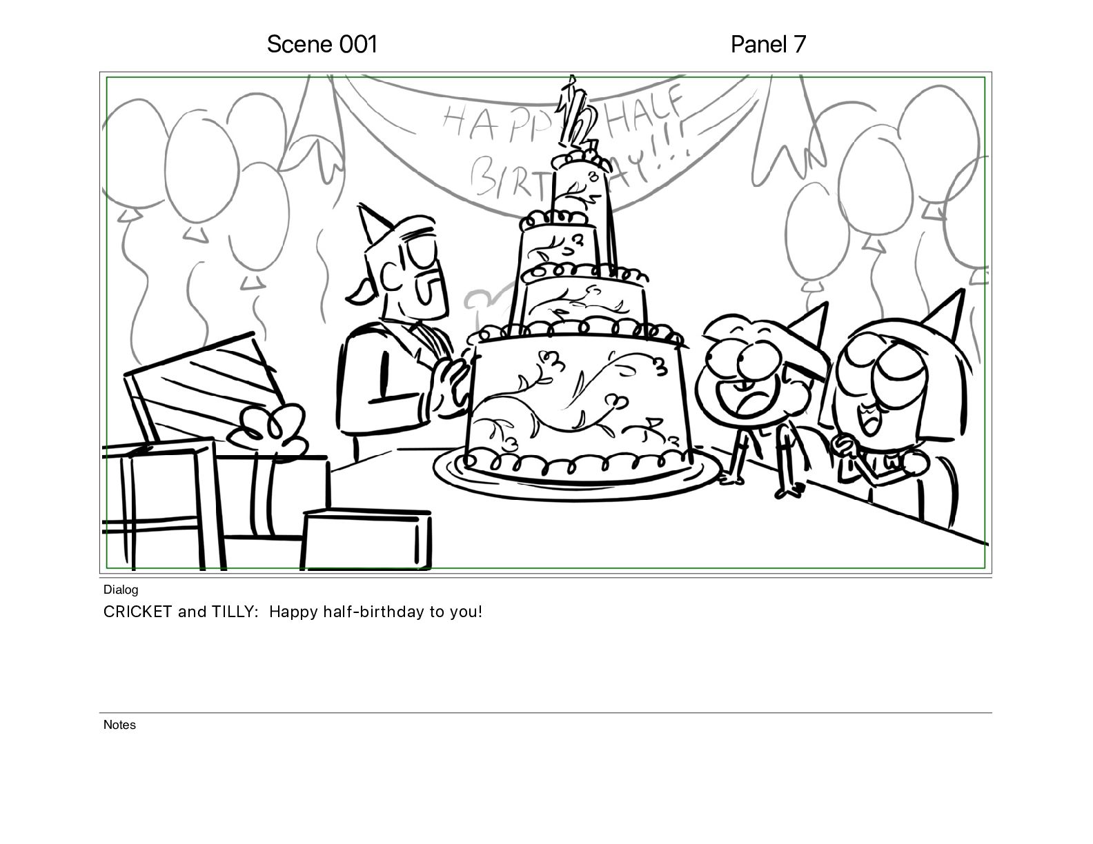 Scene 001 Panel 6 Dialog CRICKET and TILLY: Happy half-birthday
