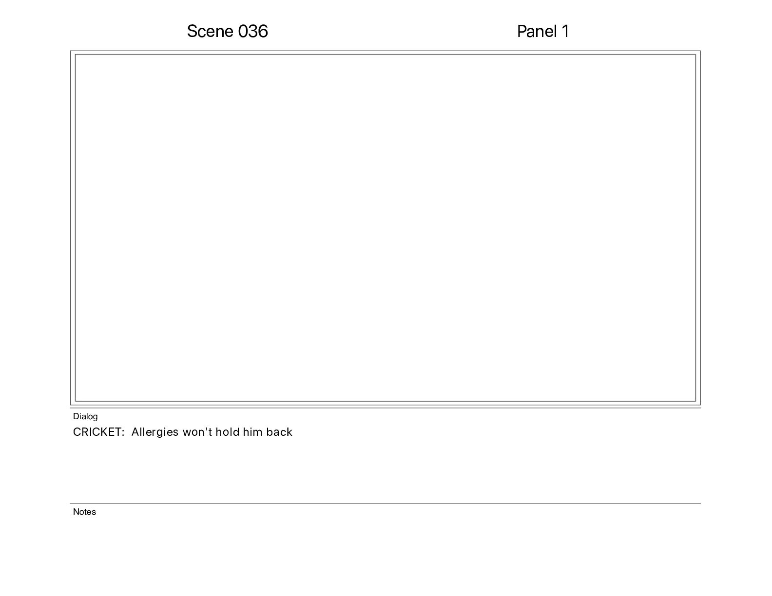 Scene 036 Panel 3 Dialog CRICKET: Allergies won't hold him