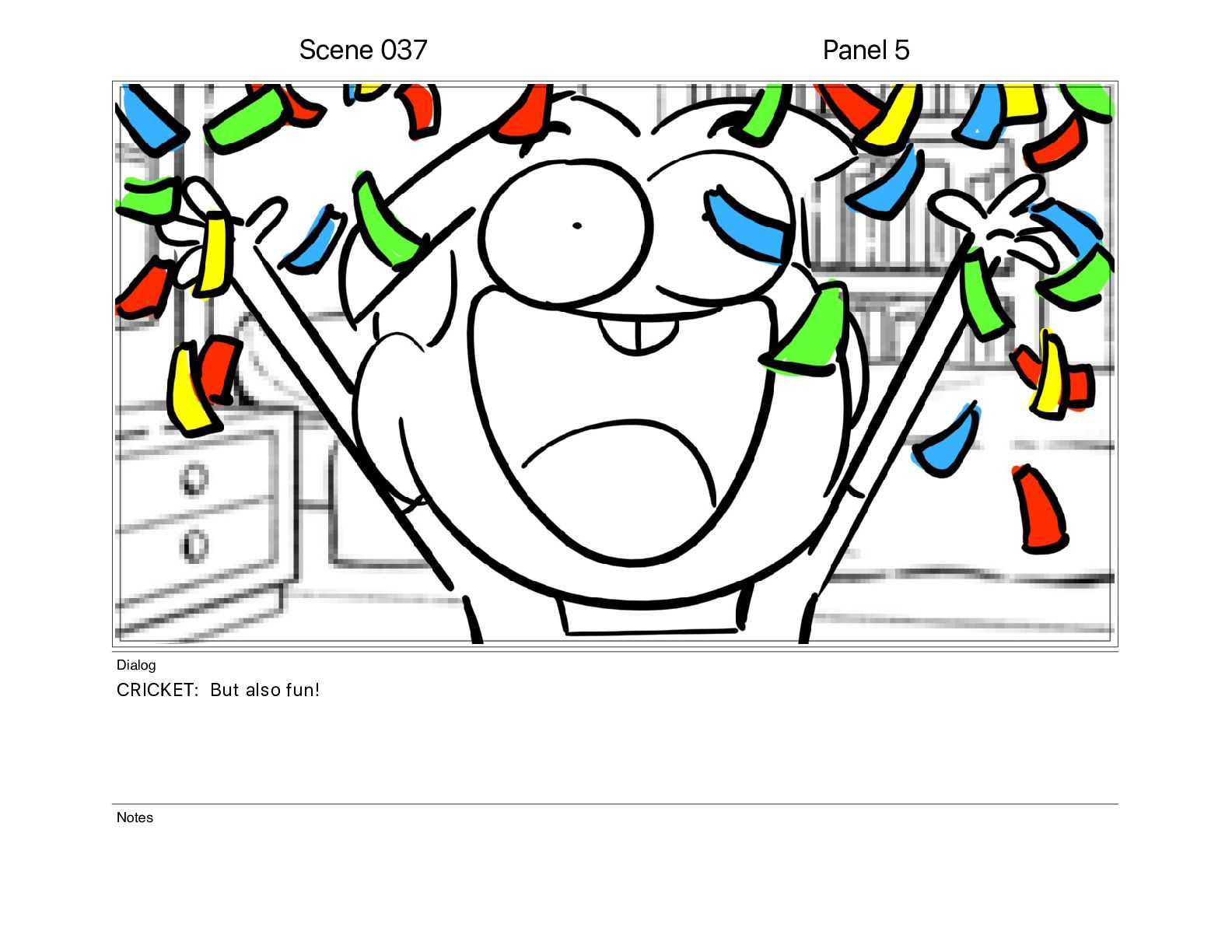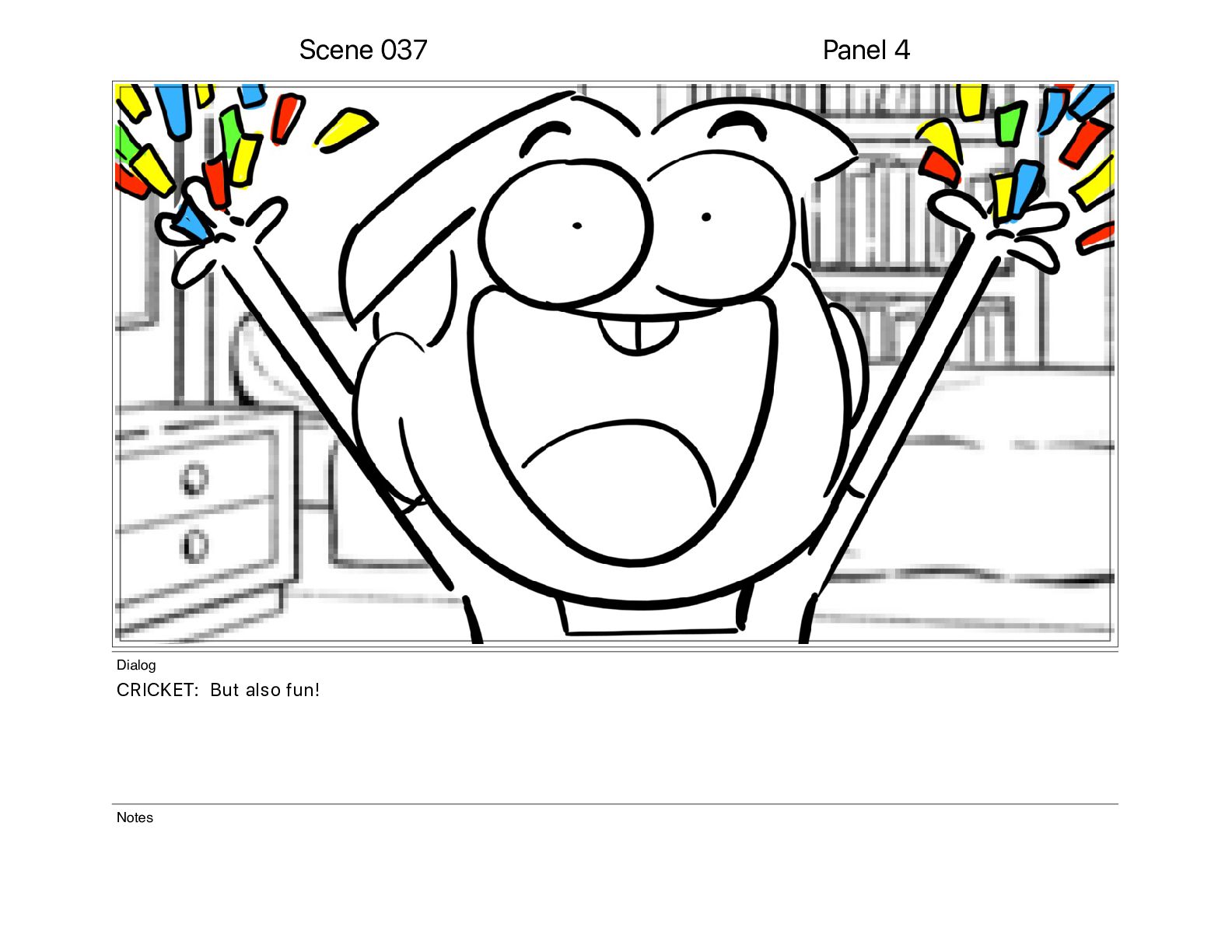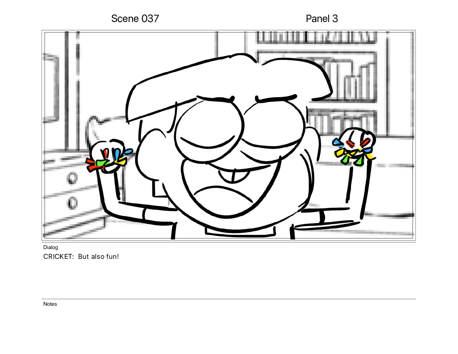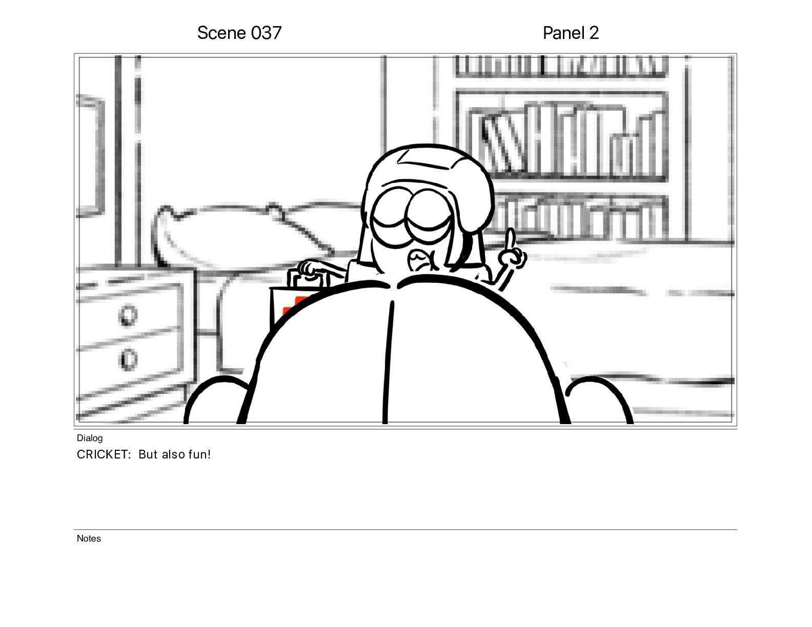 Scene 037 Panel 3 Dialog CRICKET: But also fun! Notes