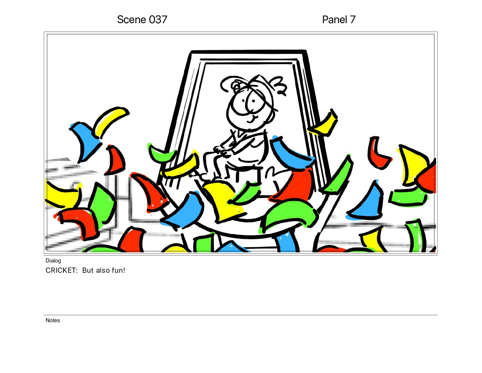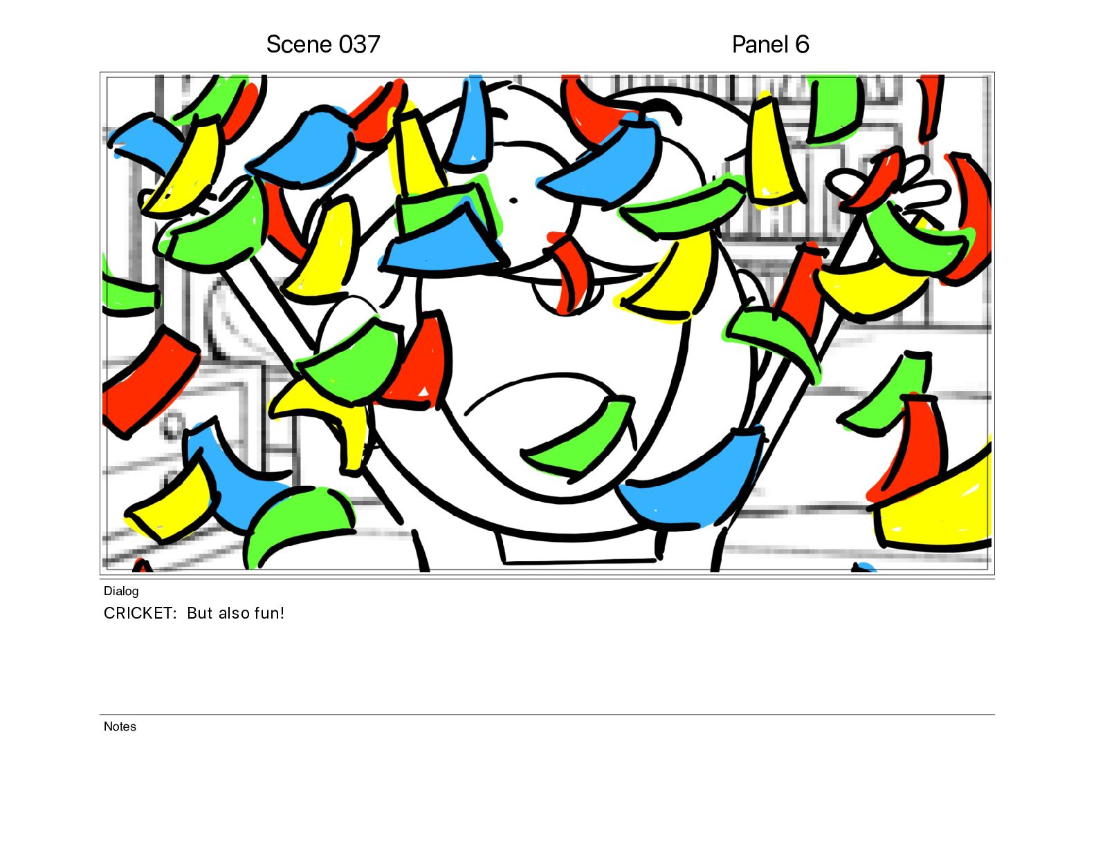 Scene 037 Panel 7 Dialog CRICKET: But also fun! Notes