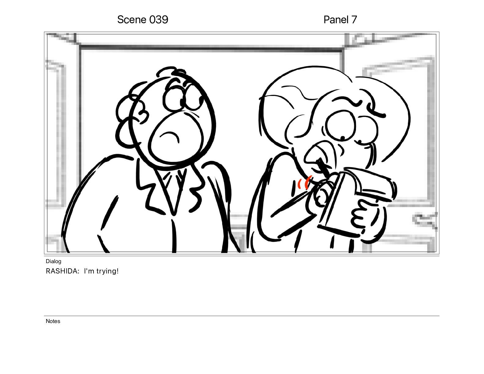 Scene 039 Panel 7 Dialog RASHIDA: I'm trying! Notes