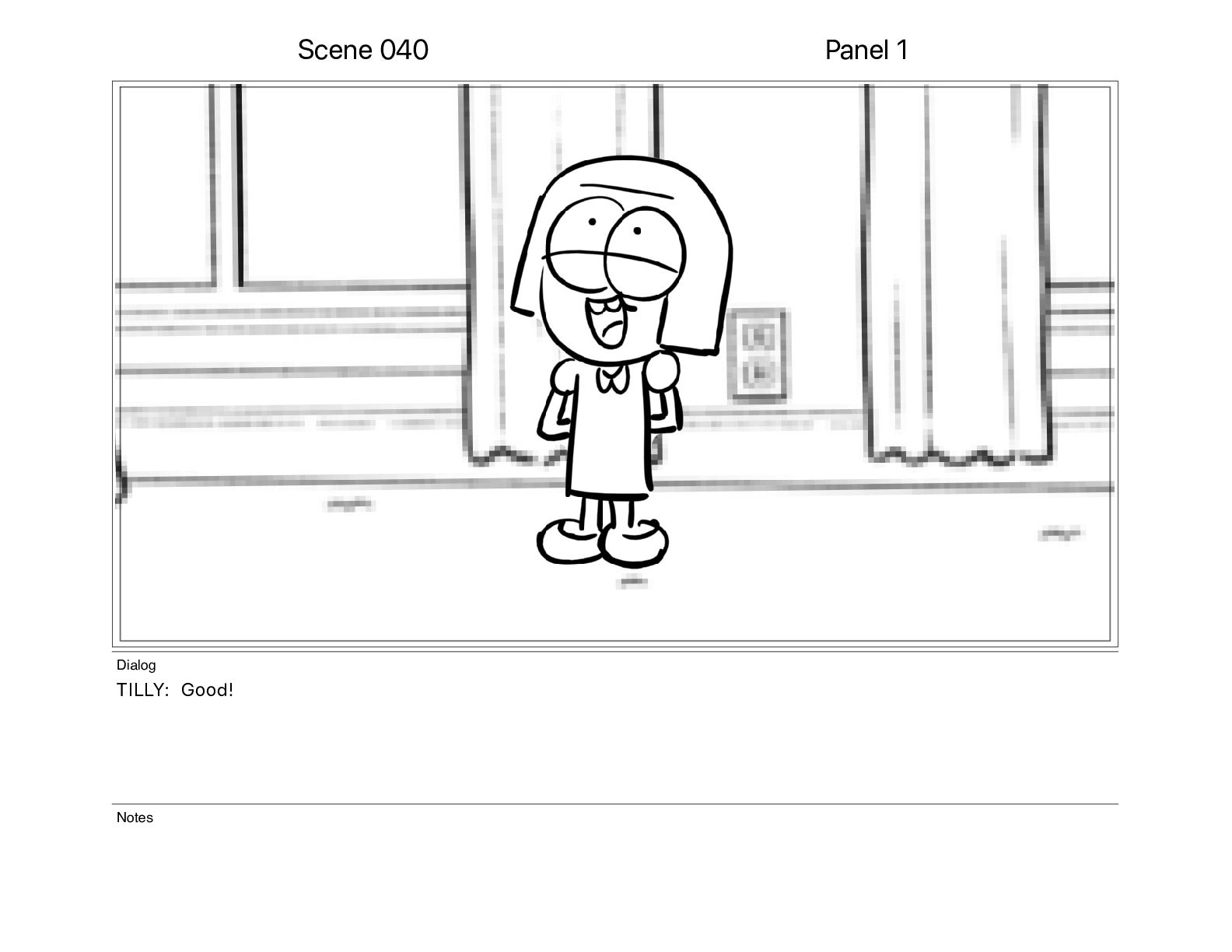 Scene 040 Panel 1 Dialog TILLY: Good! Notes