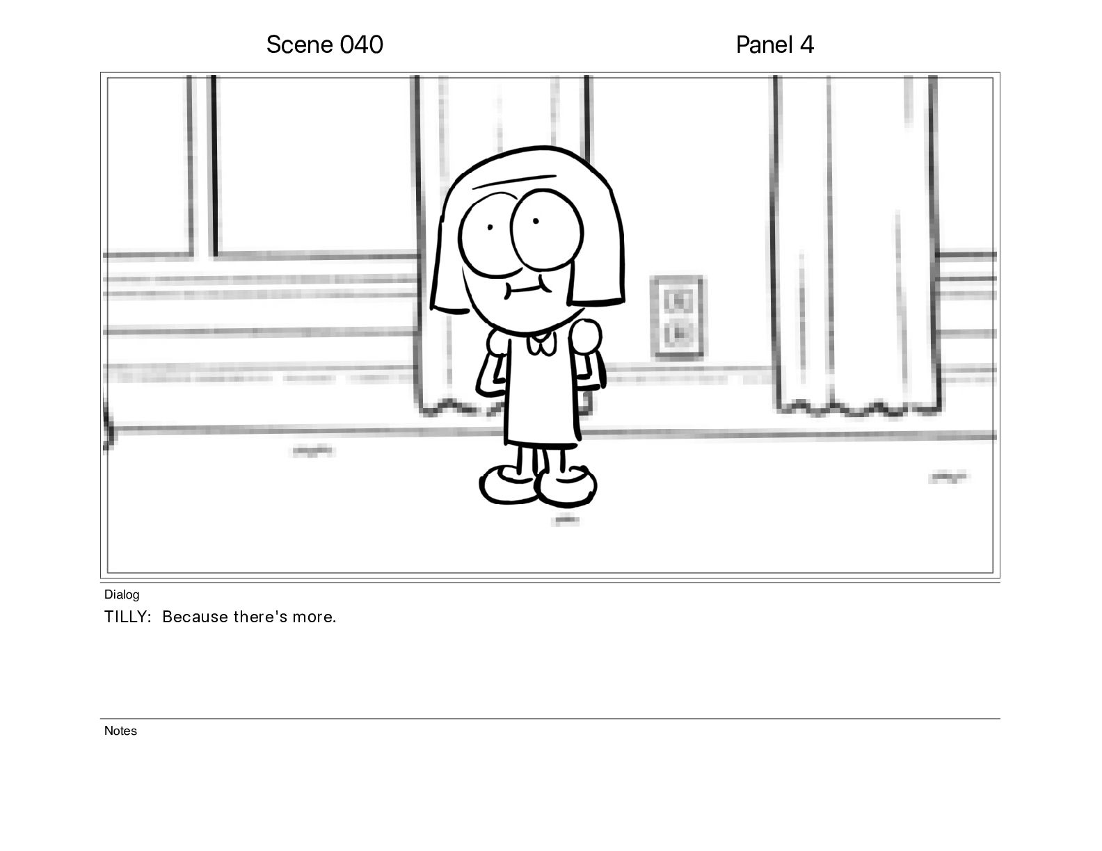 Scene 040 Panel 4 Dialog TILLY: Because there's more. Notes