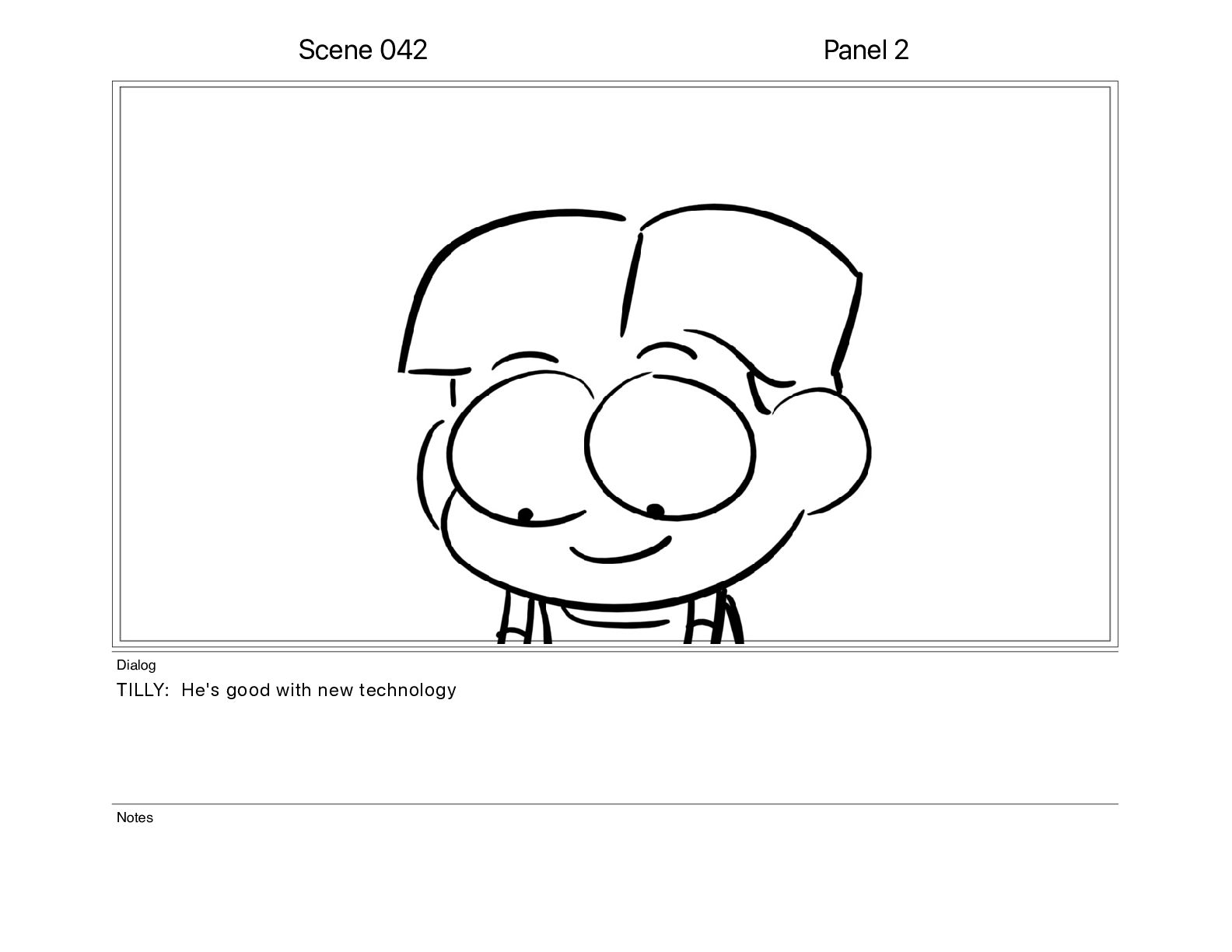 Scene 042 Panel 7 Dialog TILLY: He's good with new