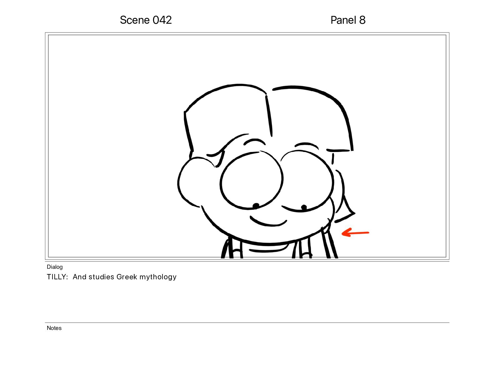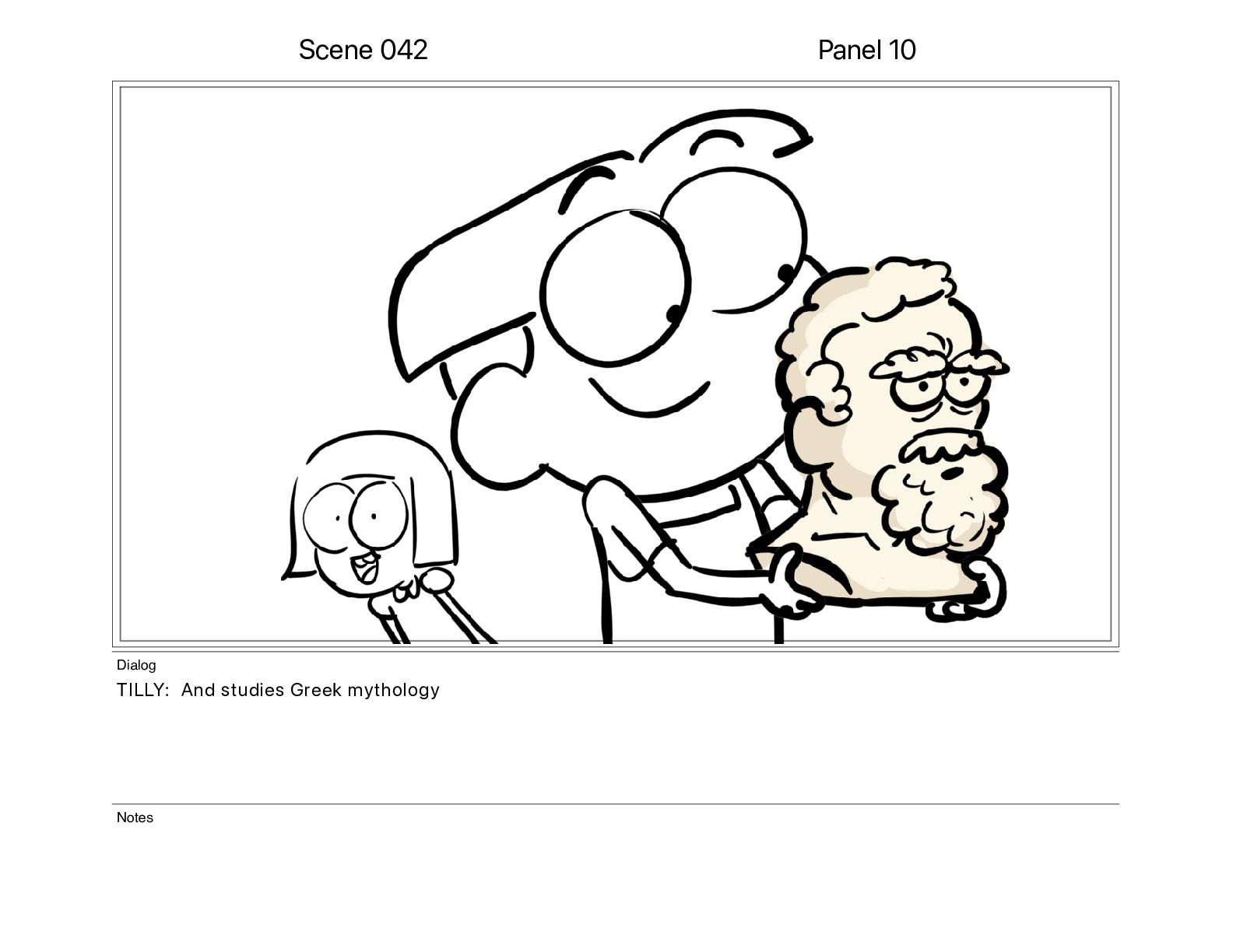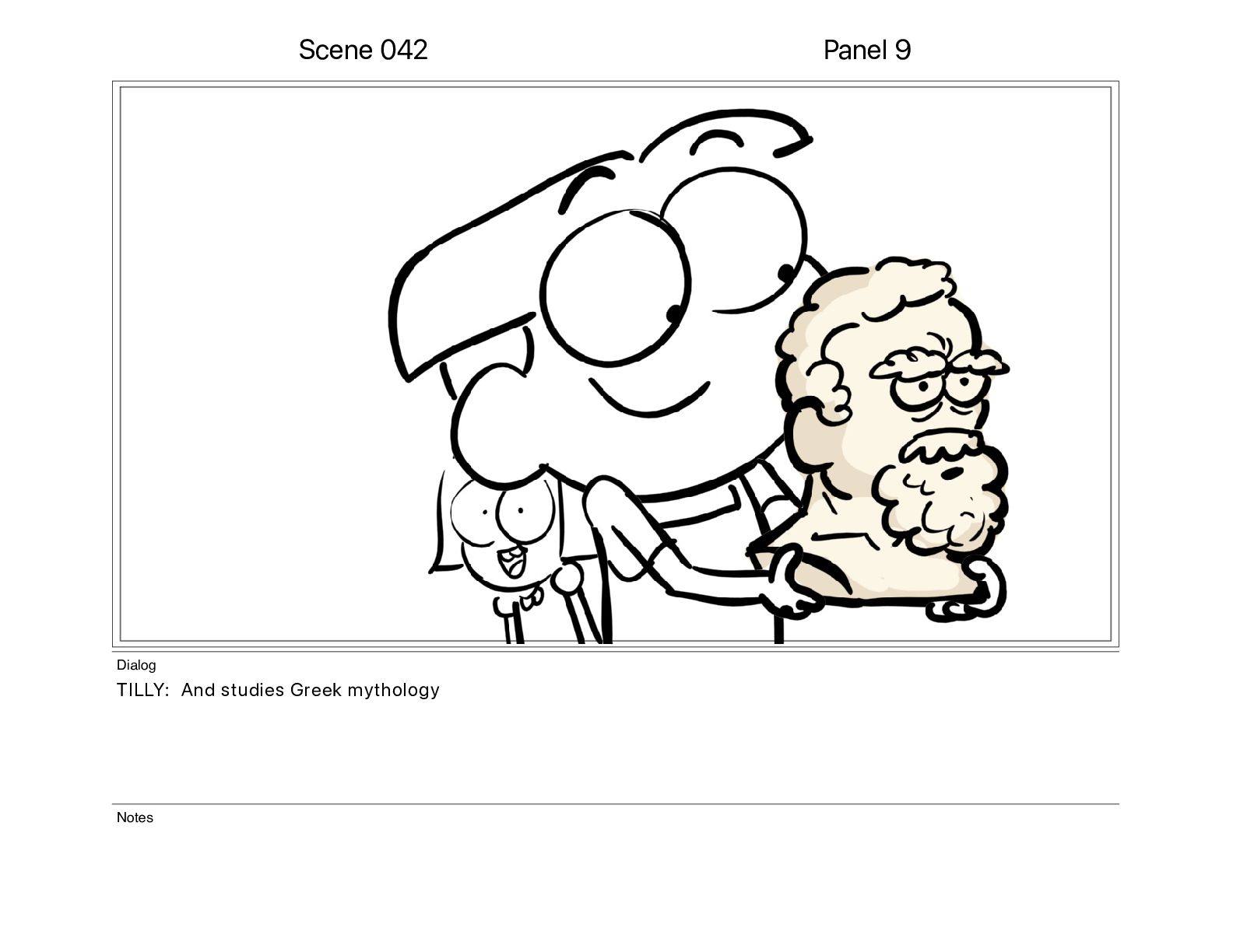Scene 042 Panel 8 Dialog TILLY: And studies Greek mythology