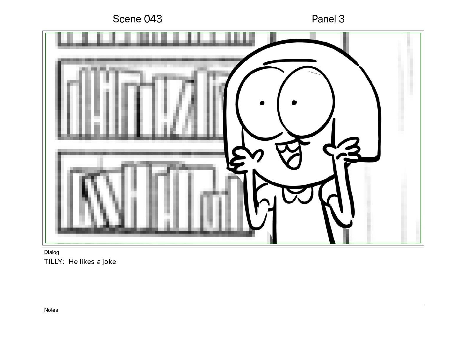 Scene 043 Panel 2 Dialog TILLY: He likes a joke