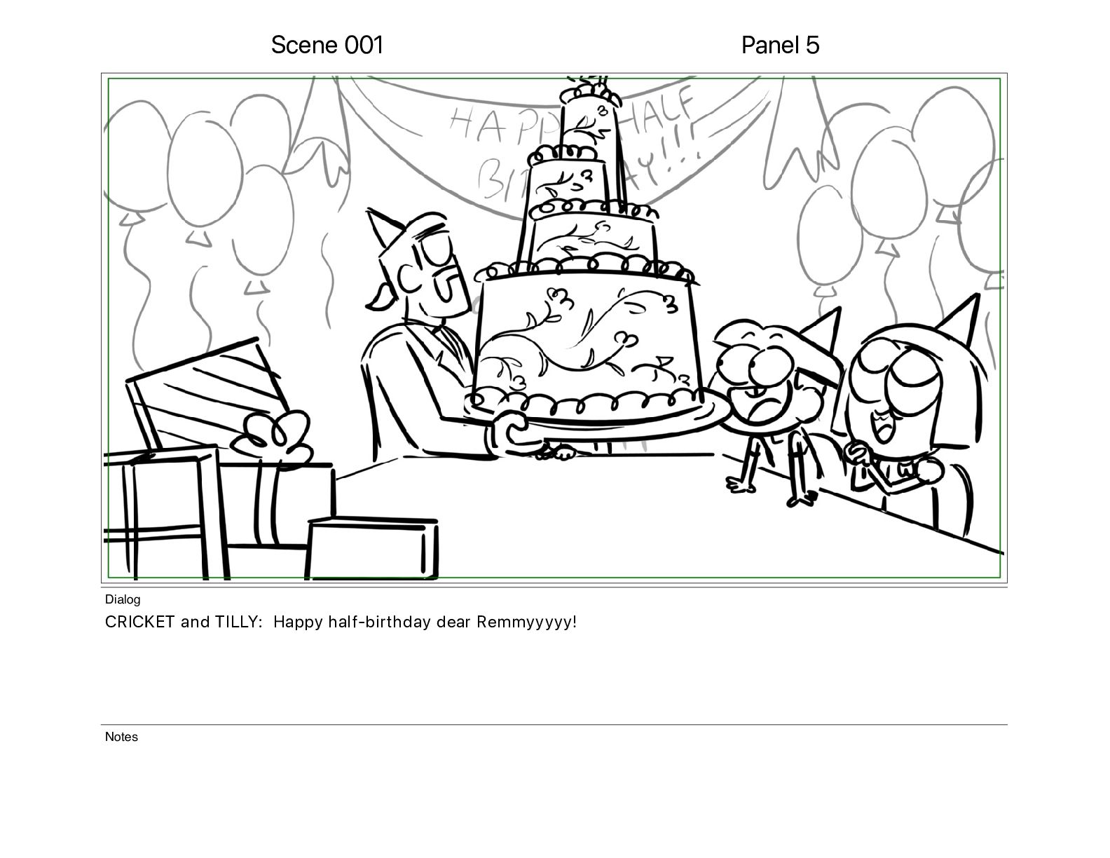 Scene 001 Panel 5 Dialog CRICKET and TILLY: Happy half-birthday