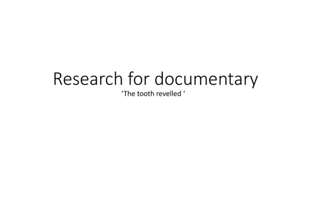 1. Primary Research Primary research within our documentary ‘The tooth Revelled’