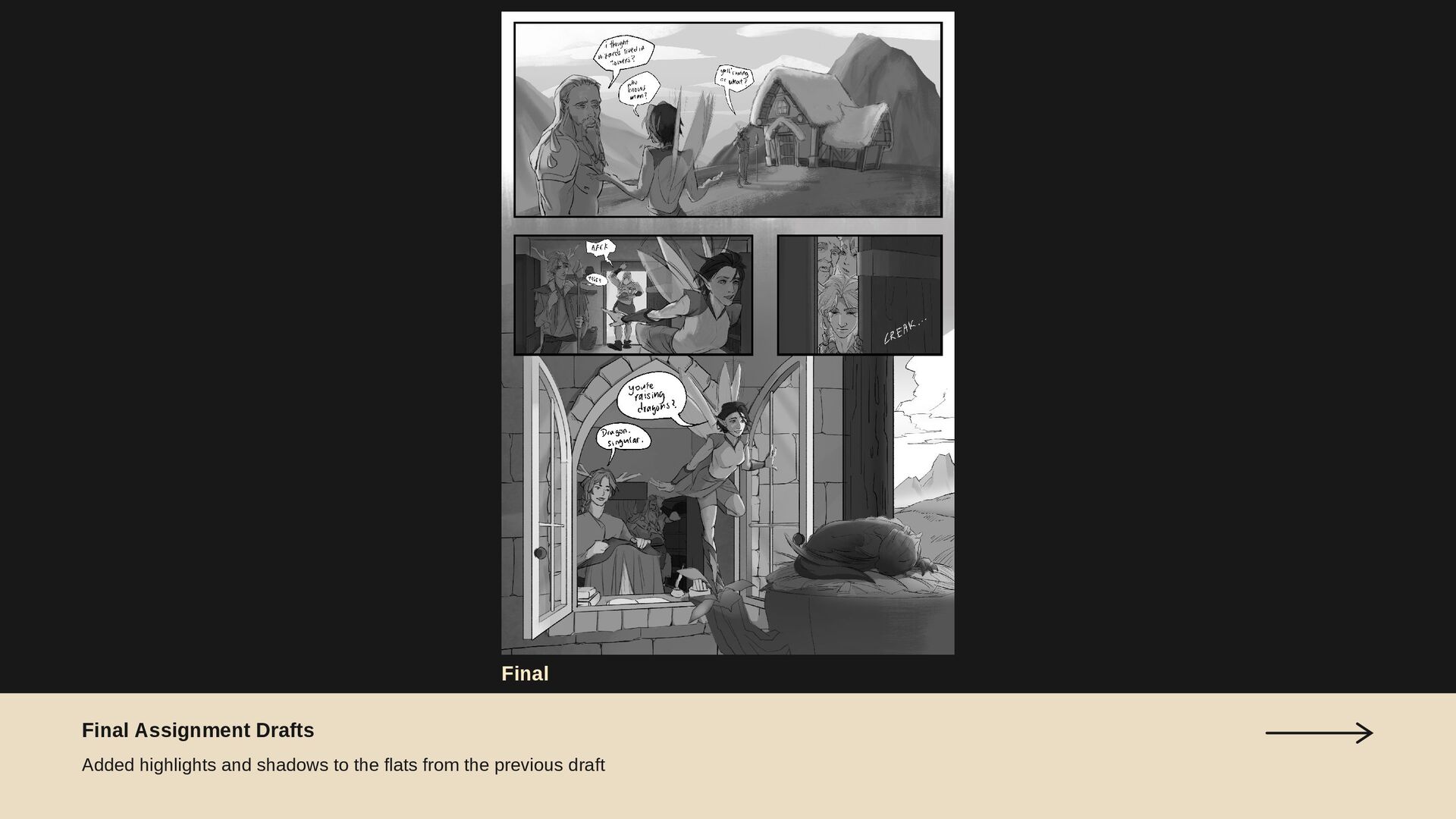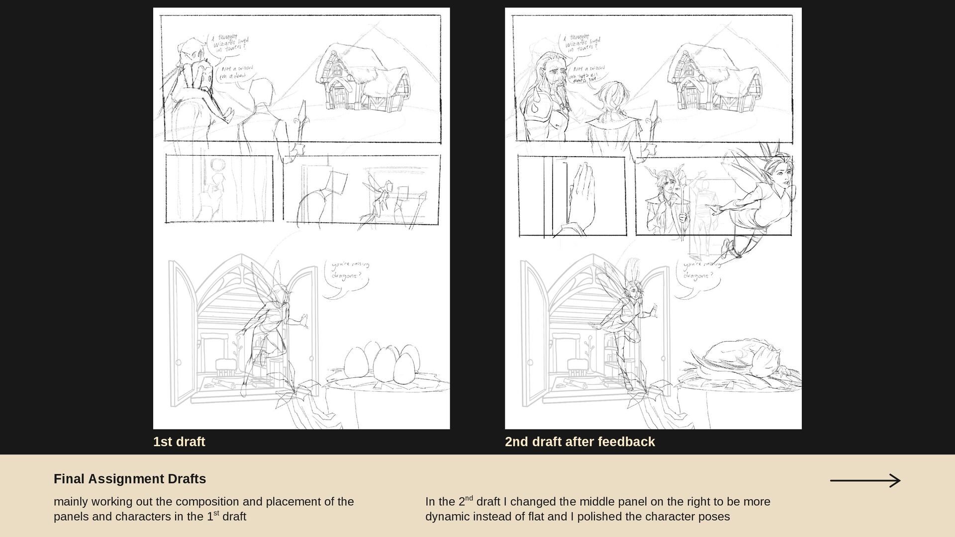 and characters in the 1 draft st Final Assignment Drafts 1st draft 2nd draft after feedback In the 2 draft I changed the middle panel on the right to be more dynamic instead of flat and I polished the character poses nd