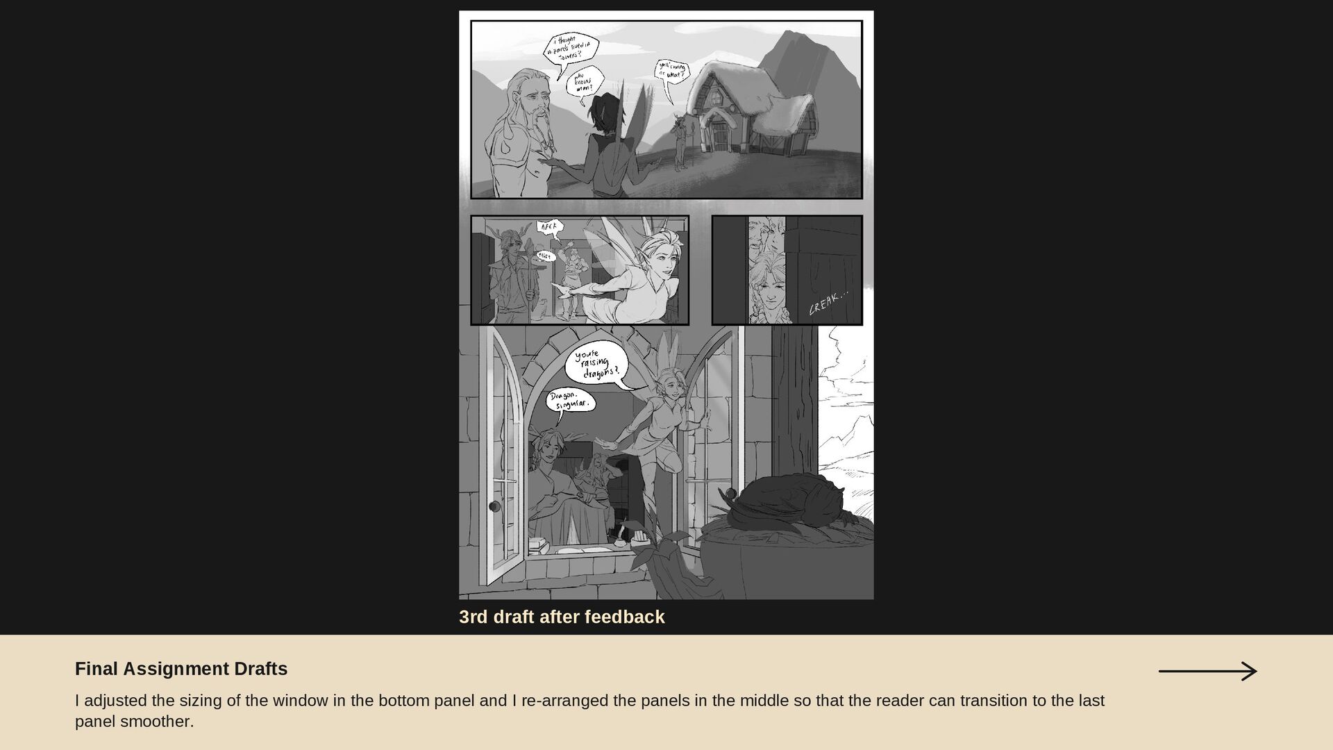 panel and I re-arranged the panels in the middle so that the reader can transition to the last panel smoother. Final Assignment Drafts 3rd draft after feedback