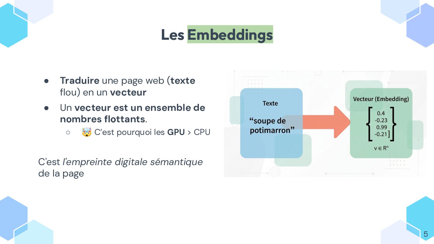 3. Les Embeddings • Traduire une page web (texte flou) en