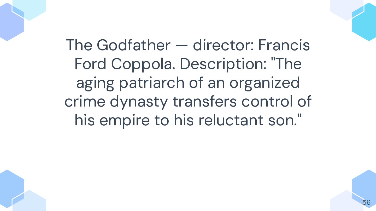 39. The Godfather — director: Francis Ford Coppola. Description: "The aging