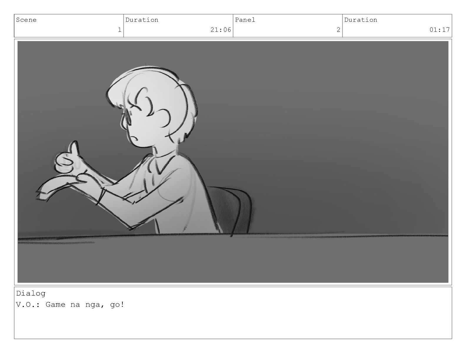Scene 1 Duration 21:06 Panel 2 Duration 01:17 Dialog V.O.: