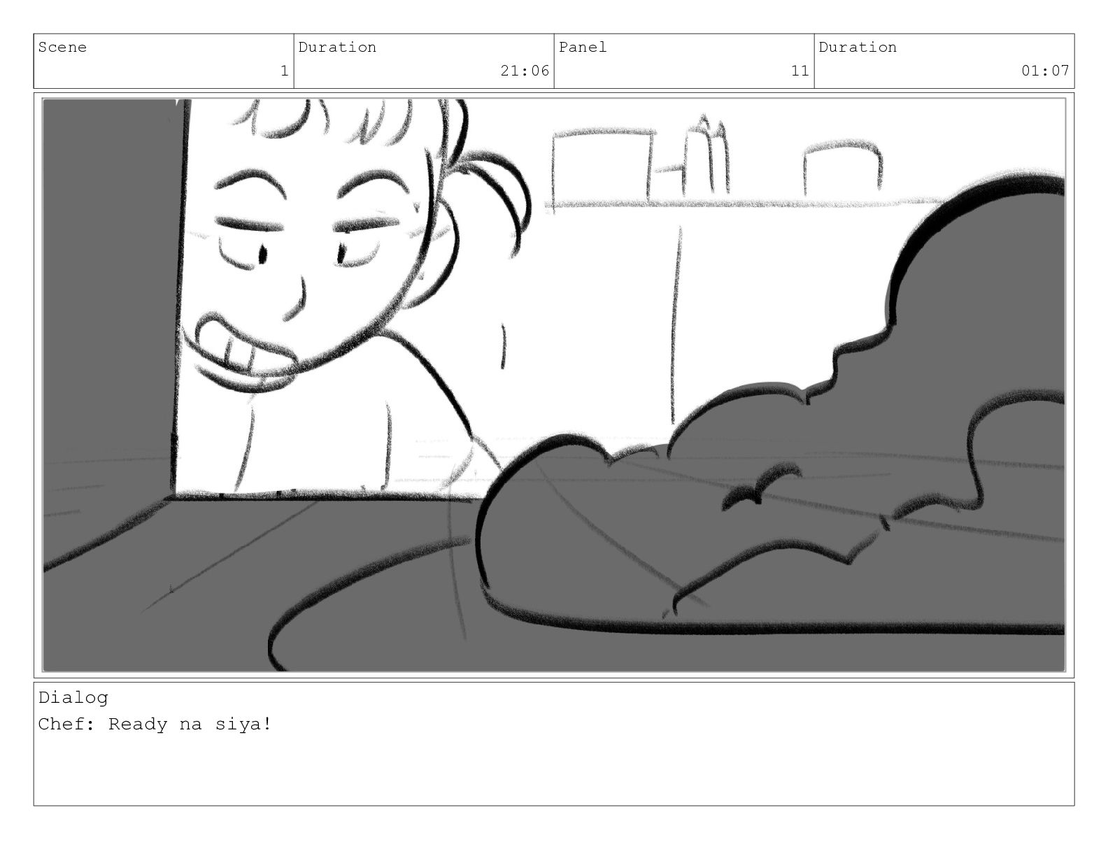Scene 1 Duration 21:06 Panel 11 Duration 01:07 Dialog Chef: