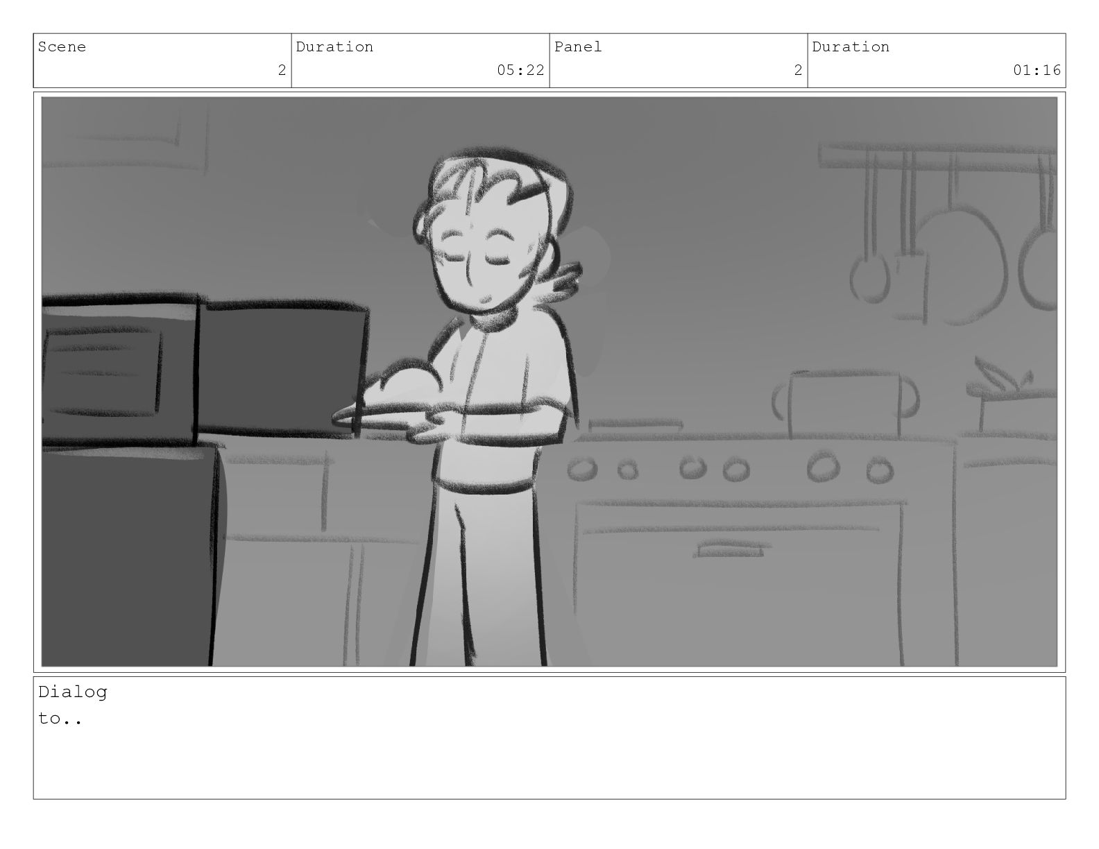 Scene 2 Duration 05:22 Panel 2 Duration 01:16 Dialog to..