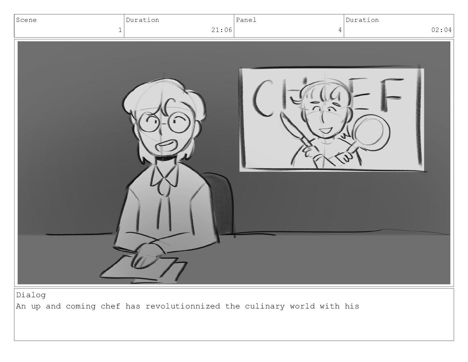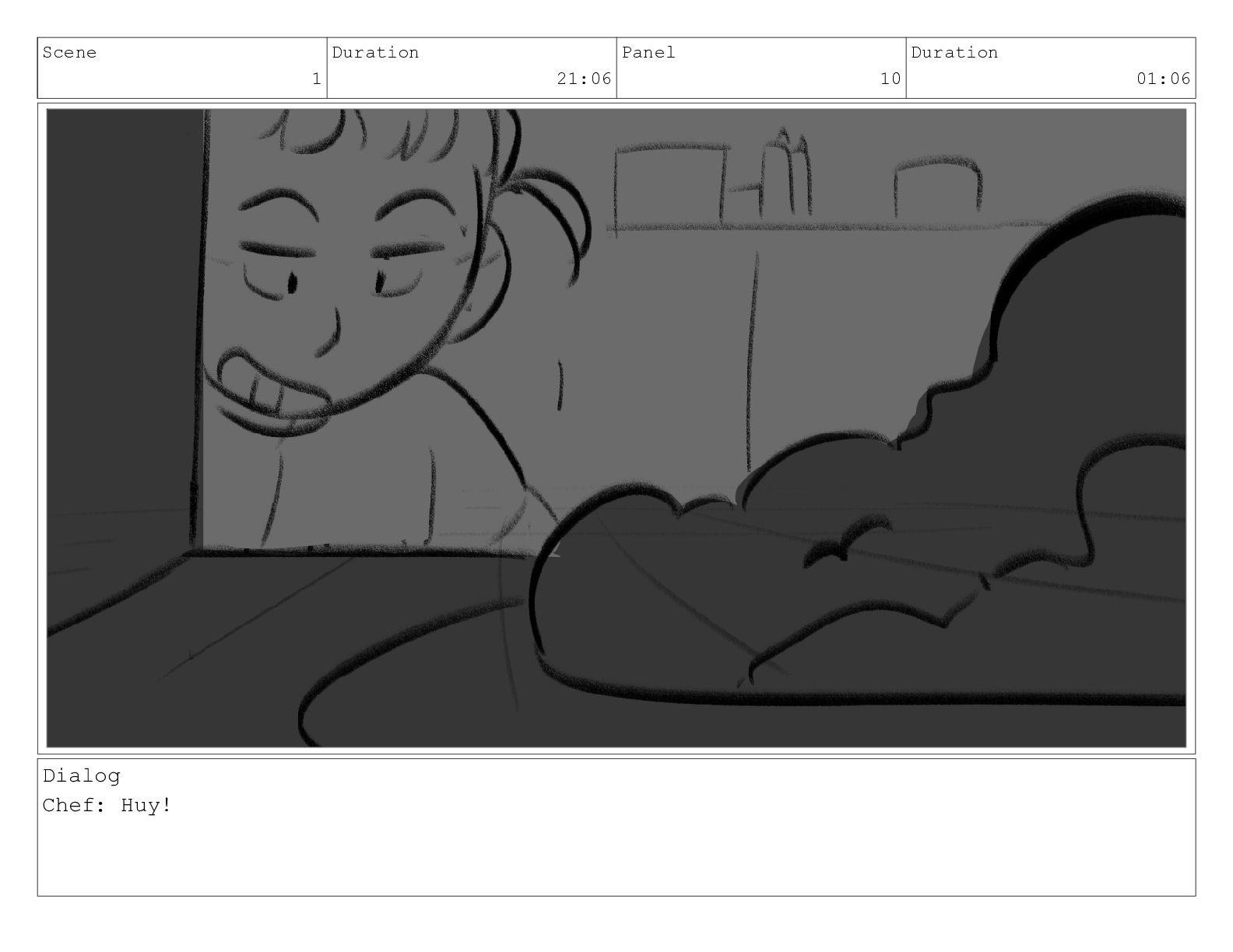 Scene 1 Duration 21:06 Panel 10 Duration 01:06 Dialog Chef: