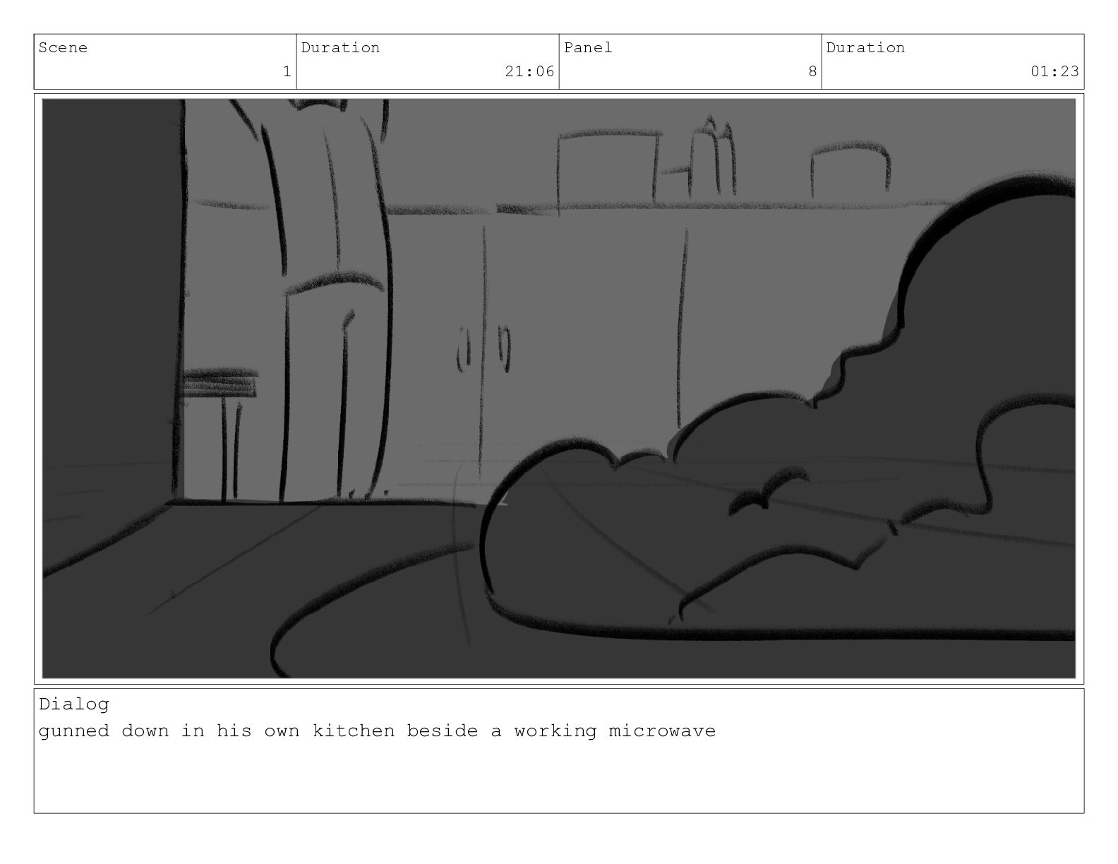 Scene 1 Duration 21:06 Panel 8 Duration 01:23 Dialog gunned