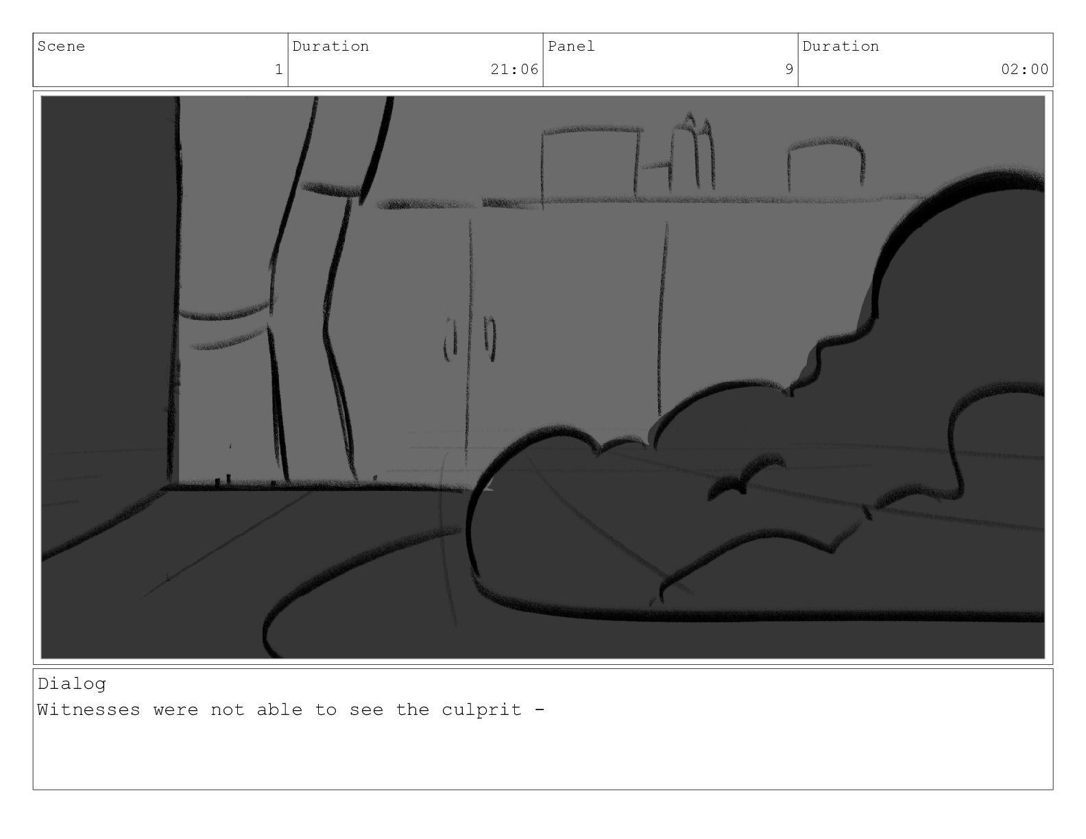 Scene 1 Duration 21:06 Panel 9 Duration 02:00 Dialog Witnesses