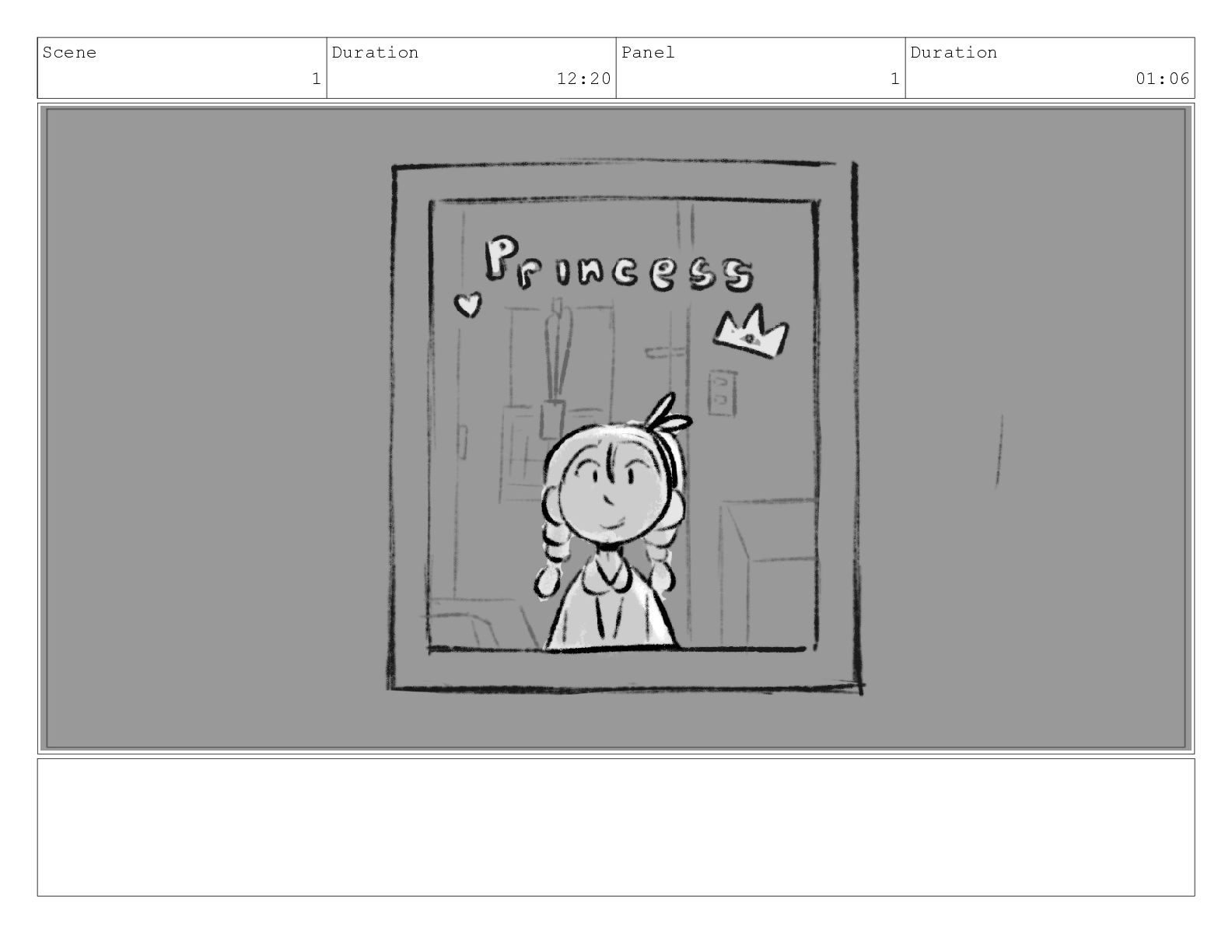 Scene 1 Duration 12:20 Panel 1 Duration 01:06
