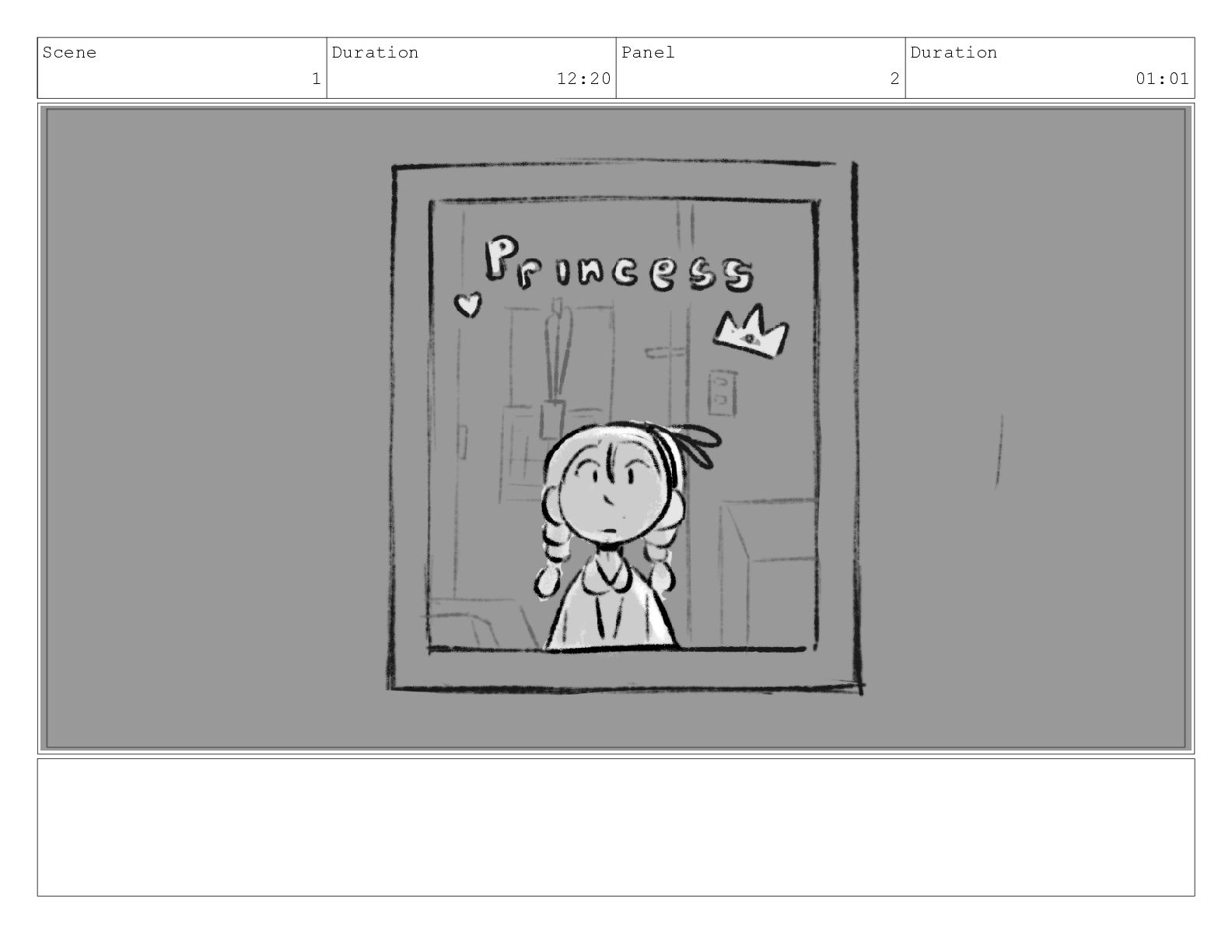 Scene 1 Duration 12:20 Panel 2 Duration 01:01