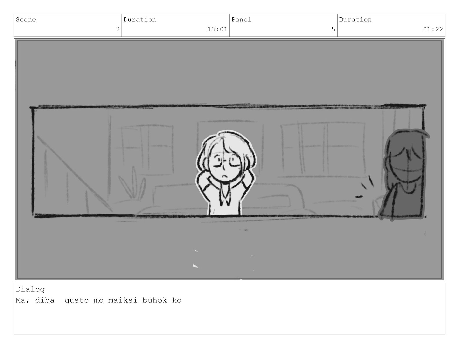 Scene 2 Duration 13:01 Panel 5 Duration 01:22 Dialog Ma,