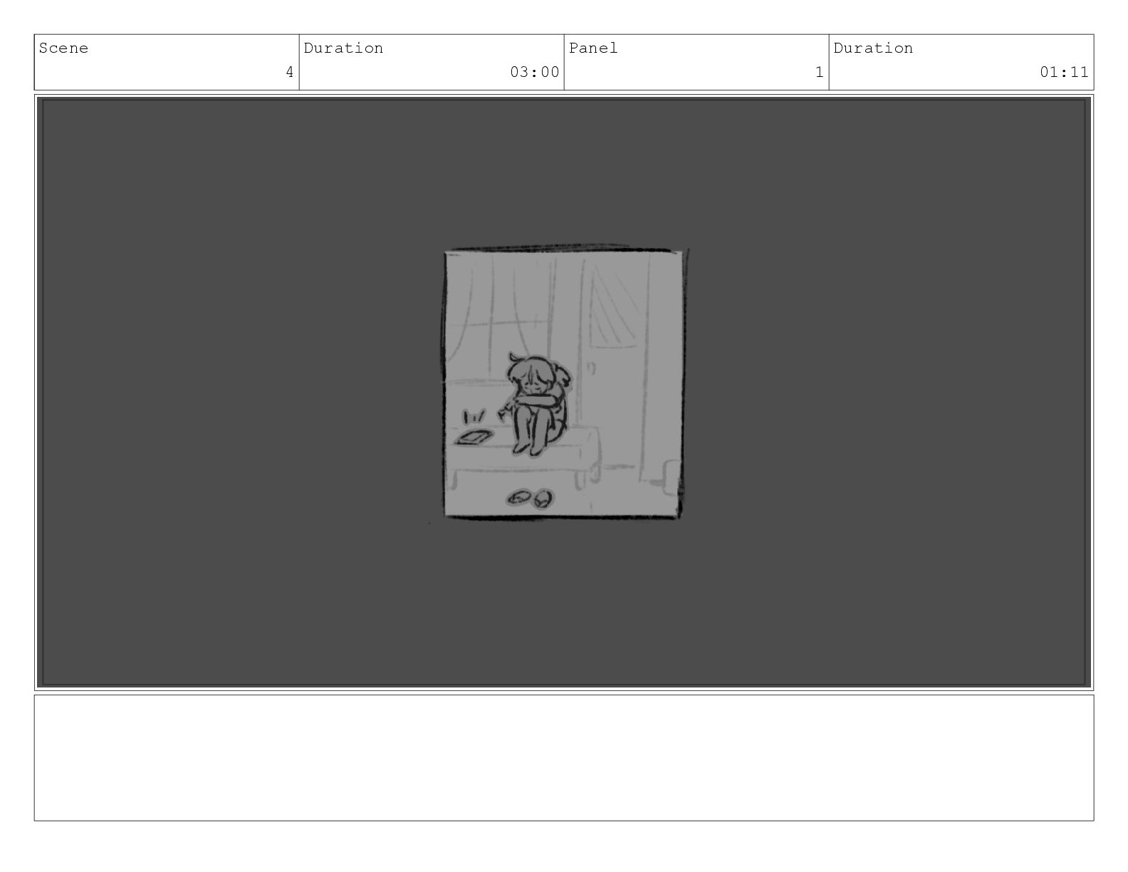 Scene 4 Duration 03:00 Panel 1 Duration 01:11