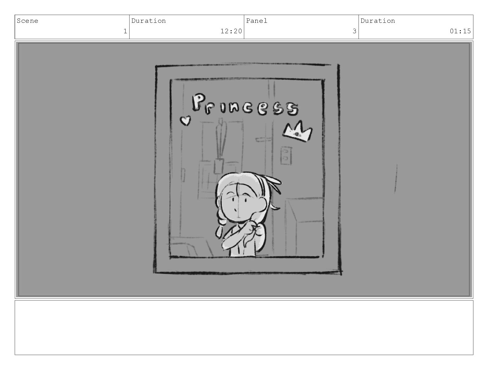 Scene 1 Duration 12:20 Panel 3 Duration 01:15