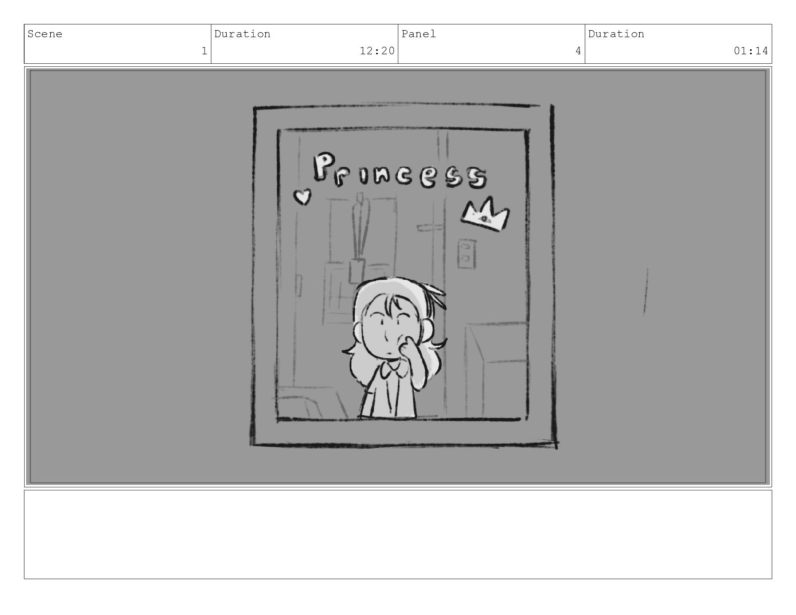Scene 1 Duration 12:20 Panel 4 Duration 01:14