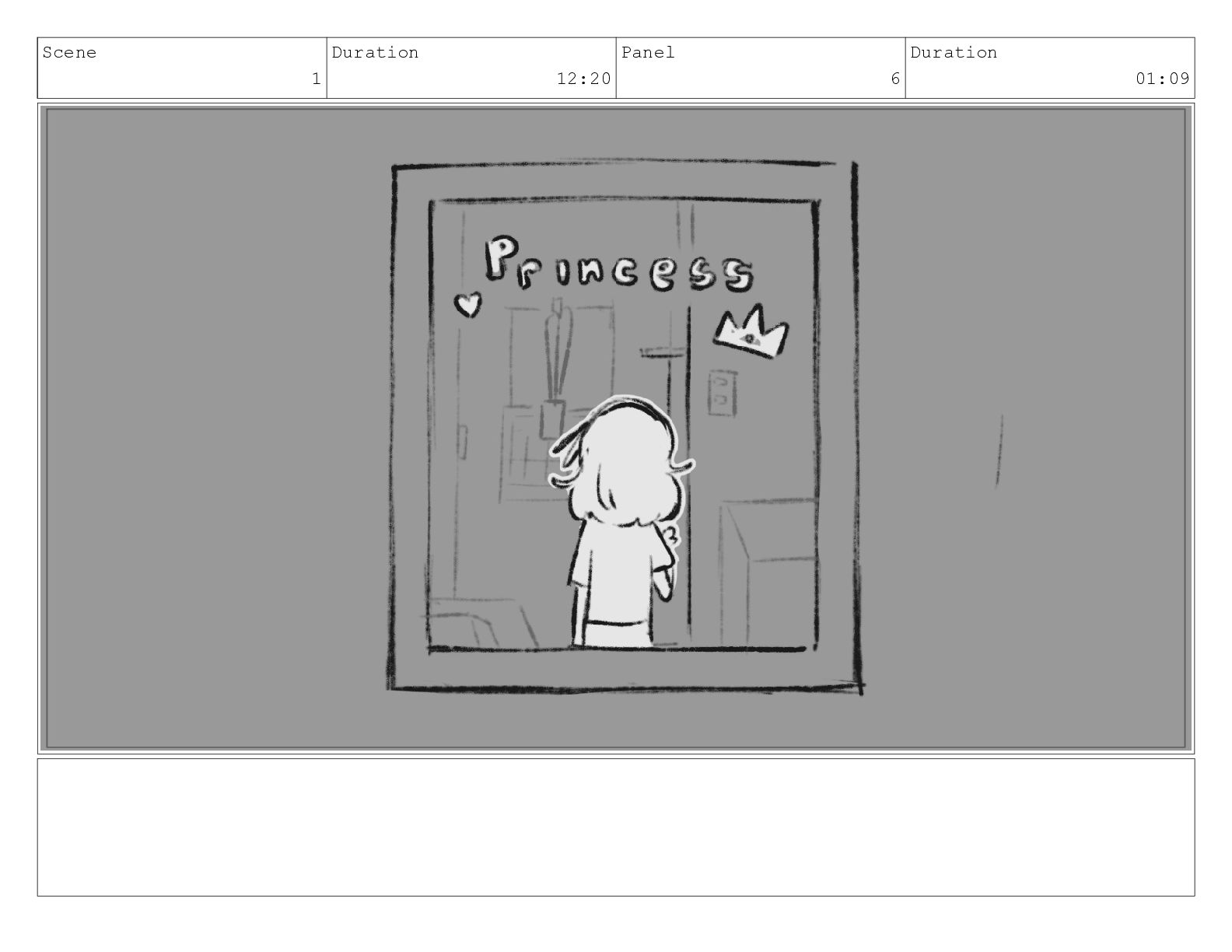 Scene 1 Duration 12:20 Panel 6 Duration 01:09