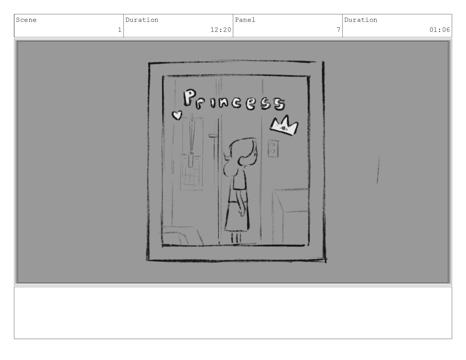 Scene 1 Duration 12:20 Panel 7 Duration 01:06