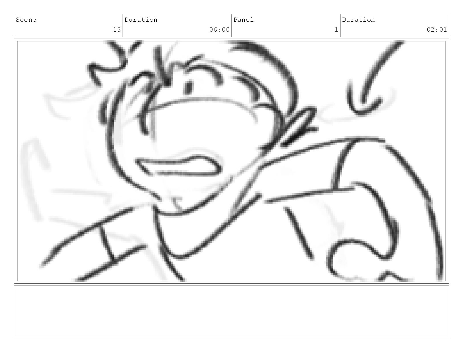 Scene 13 Duration 06:00 Panel 1 Duration 02:01