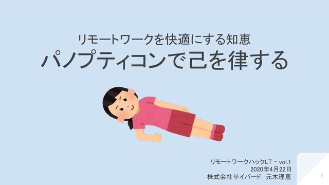 This is a presentation based on the theory of Panopticon regarding how to control yourself about sports during remote work.