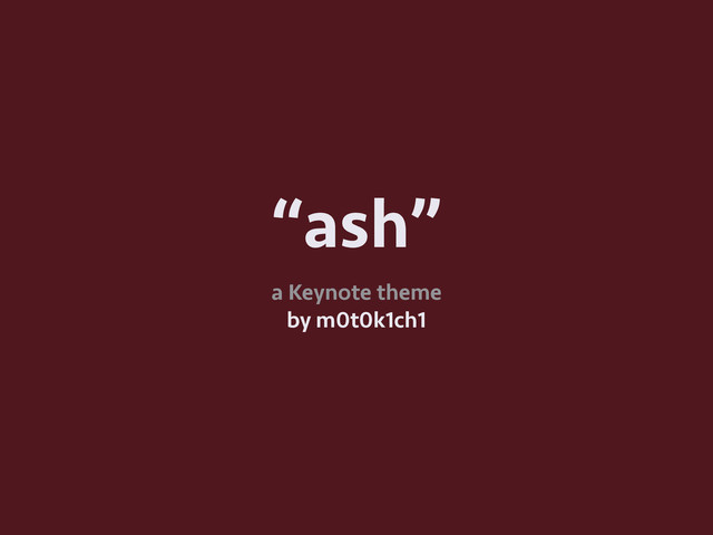 What’s “ash”? • Keynote ςʔϚ • Azusa Έ͍ͨʹγϯϓϧͰ͍͍ײ͡Ͱɺ͔ͭ ौ͍৭ͷ Keynote