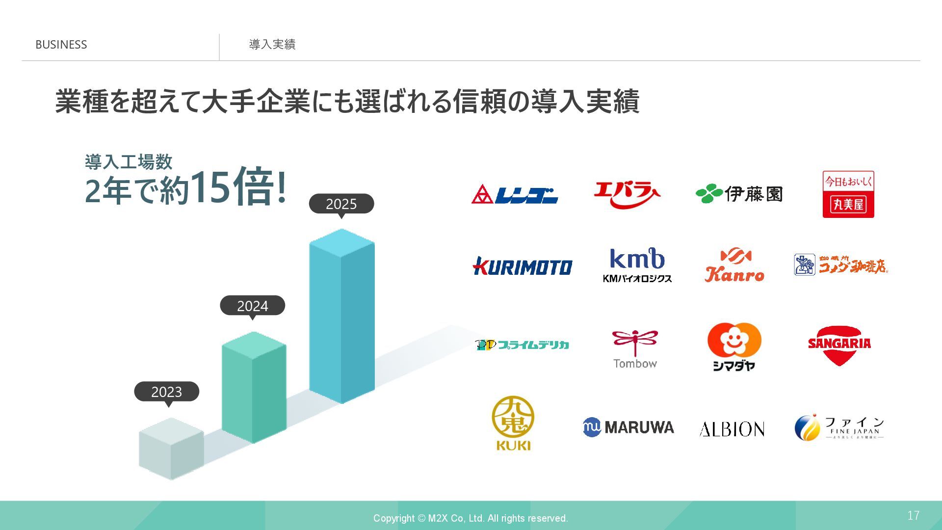 BUSINESS 導入実績 導入工場数 2年で約15倍! 2023 2024 2025