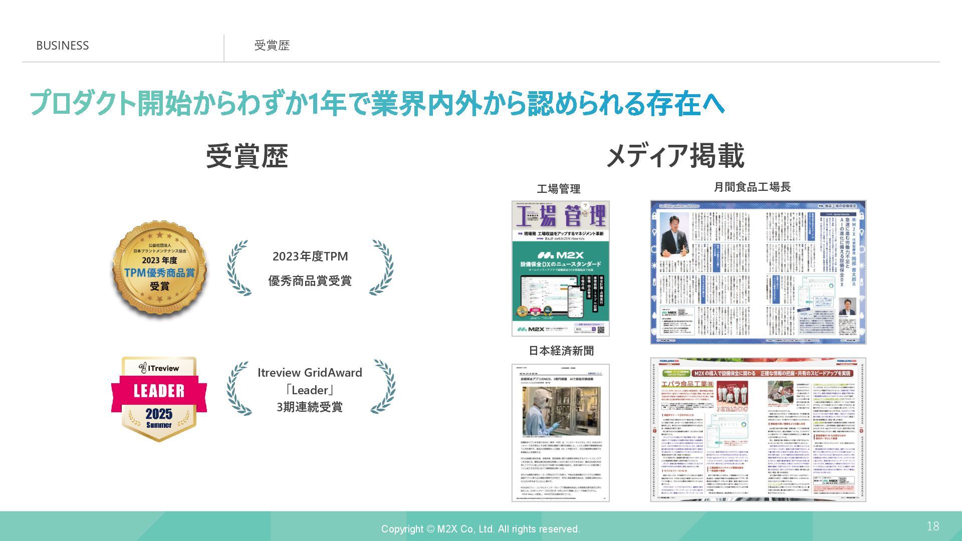 GridAward 「Leader」 3期連続受賞 2023年度TPM 優秀商品賞受賞 プロダクト開始からわずか1年で業界内外から認められる存在へ BUSINESS 受賞歴 メディア掲載 受賞歴 日本経済新聞 工場管理 月間食品工場長