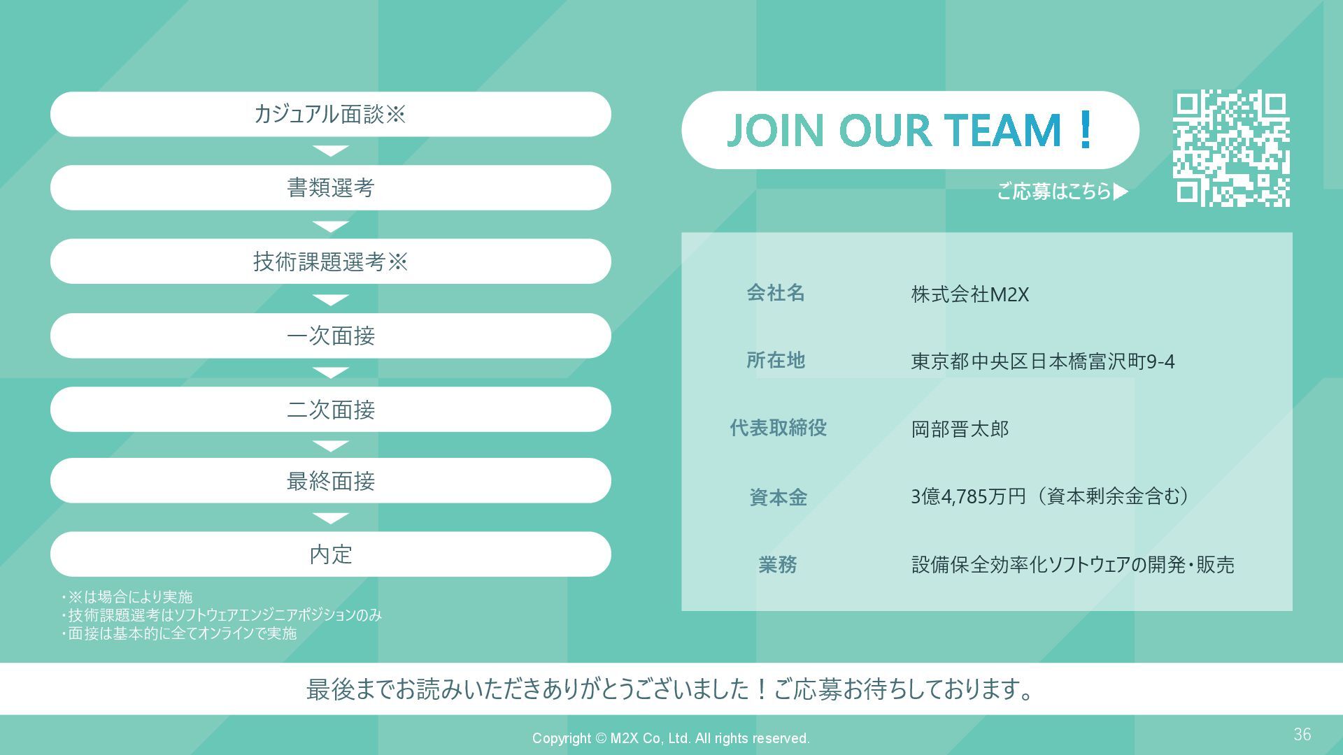 Copyright © M2X Co, Ltd. All rights reserved. 36 最後までお読みいただきありがとうございました!ご応募お待ちしております。