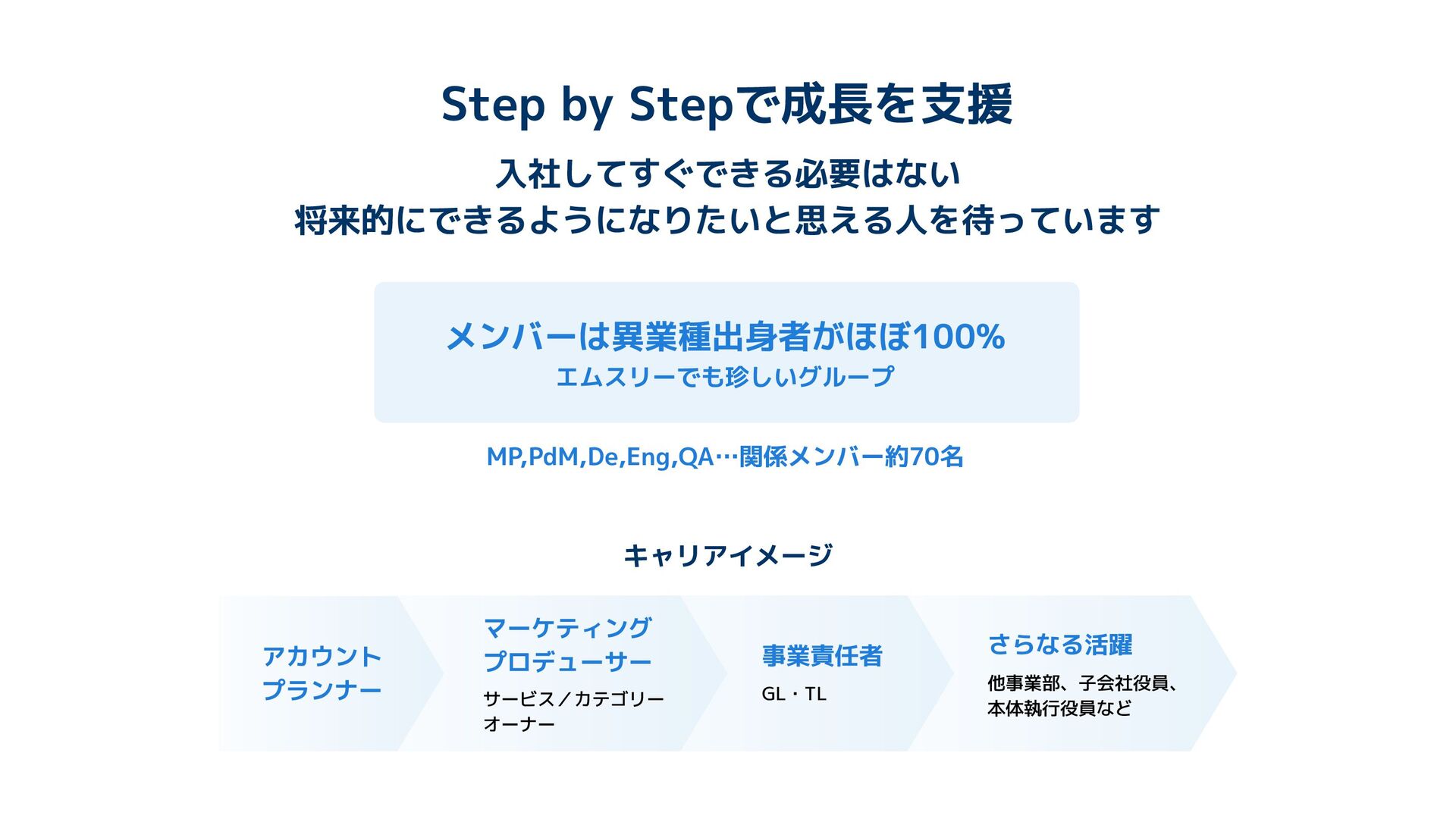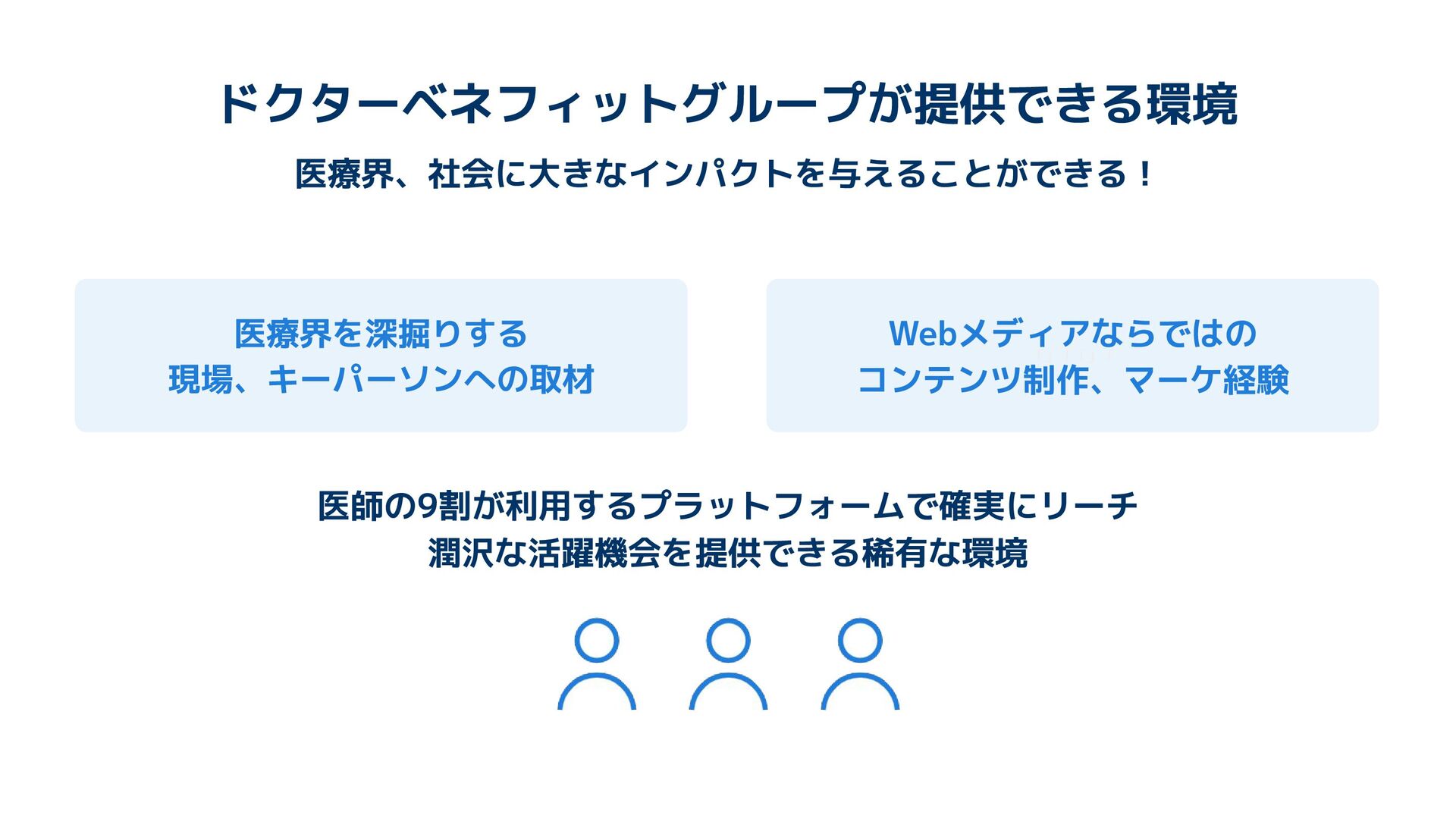 エムスリー・ドクターベネフィットGは、「医師の生活に役立つサービスや情報の開発・提供と、広告主への価値創出を通じて、エムスリーの売上・利益の向上に貢献する」をミッションに活動しています。 このスライドでは組織や仕事内容、環境、キャリアなどを説明します。