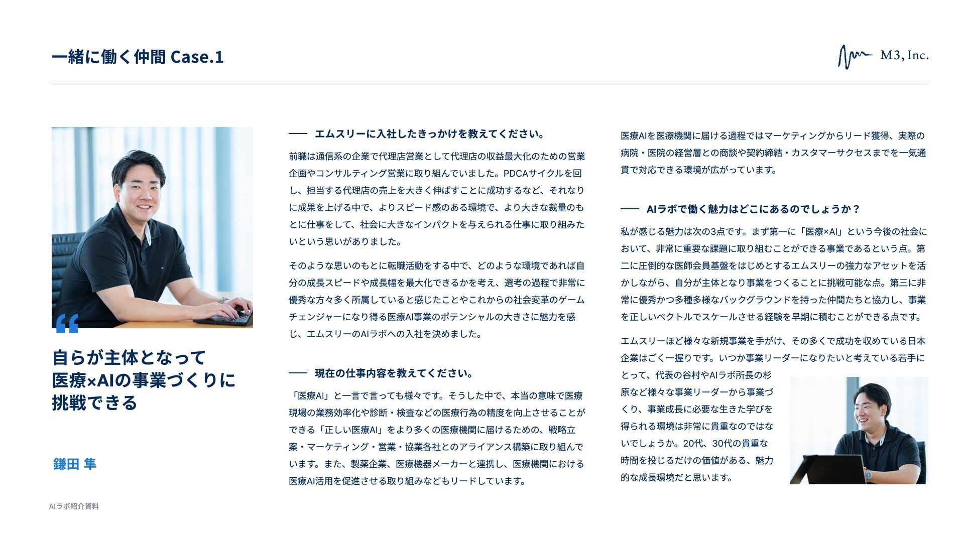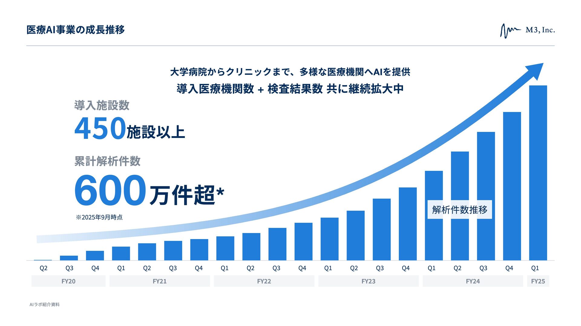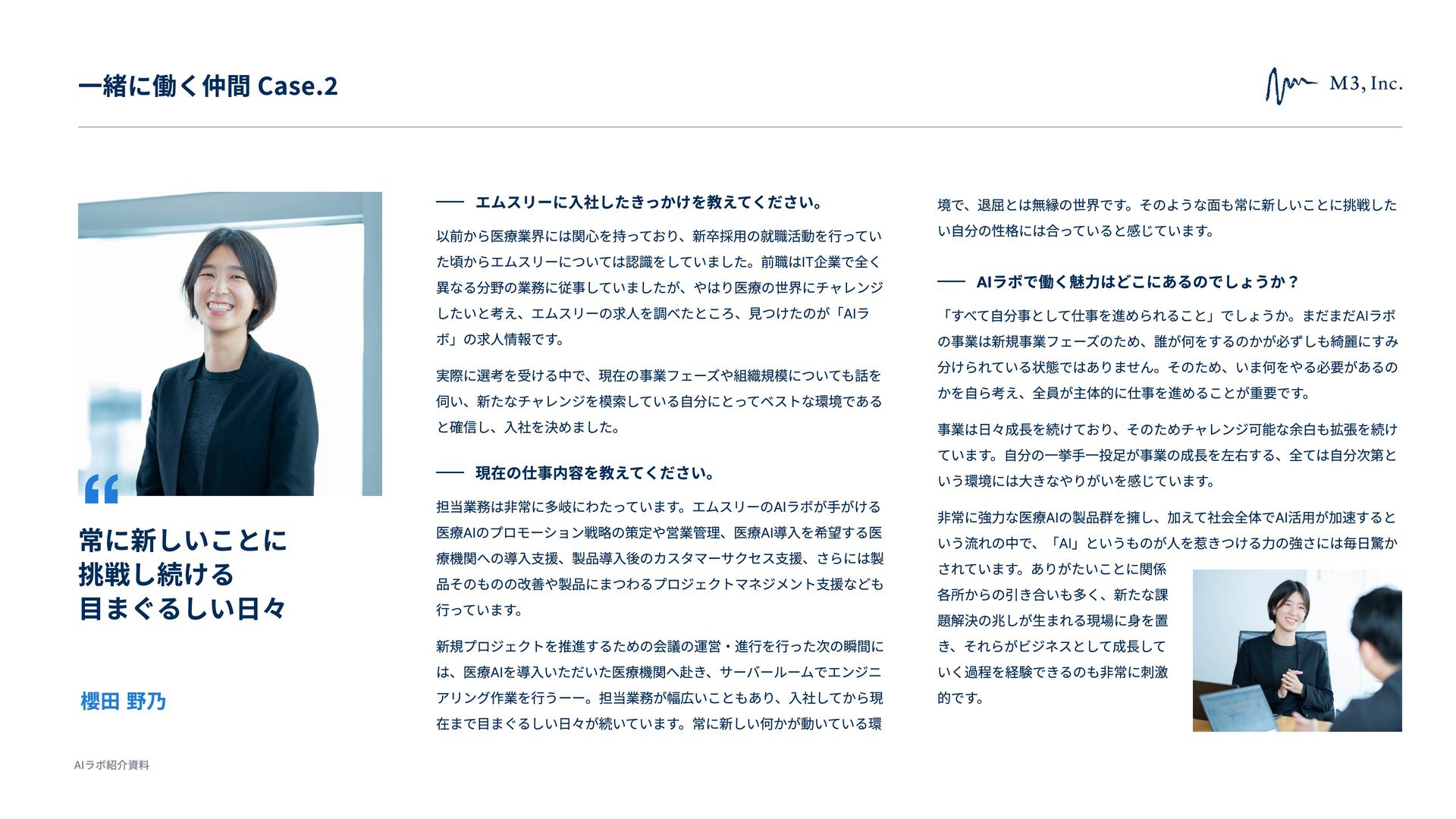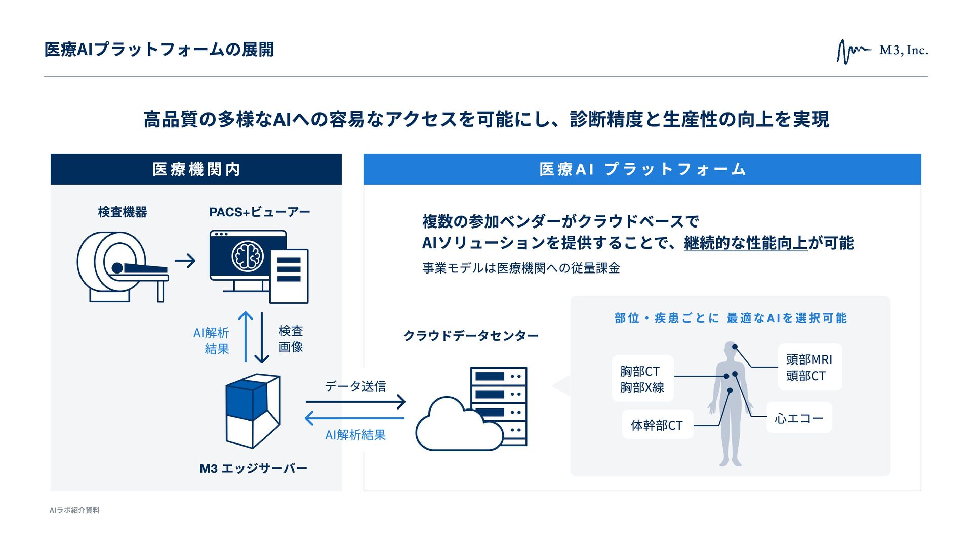 医療機器として認可を取得。日本発のプロ ダクトとして世界で注目を集めました。 ※ 製薬企業 日本ベーリンガーインゲルハイム かかりつけ医 呼吸器専門医 “線維化を伴う間質性肺疾患”の疑い 15万人 診断/治療 1.5万人 HRCT検査 呼吸機能検査 問診・身体所見 血液検査 胸部X線 日常的な検査での発見を支援し、 専門家による早期診断・治療へ繋げる 出典:疑い患者数と診断数:信州医誌, 60(2):98, 2012.「間質性肺疾患は、患者数は10万人あたり約10〜20人ですが、未診断の早期病変の潜在的患者数はその10倍以上とも推測される」という記載から疑い患者数を算出。診断済み患者数 については、特発性間質性肺炎の0話元年ど医療受給者証保持者数を記載。 診断フロー:日本呼吸器学会びまん性肺疾患診断・治療ガイドライン作成委員会編:特発性間質性肺炎 診断と治療の手引き2022; 改訂第4班 p.168-169, 2922 南江堂より一部修正 確信度スコアを表示