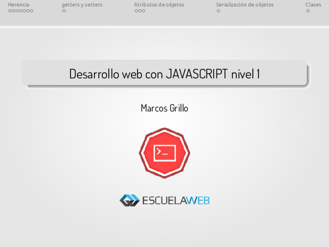 Clases 1 Herencia Uso de Object.create 2 getters y setters Getters y setters 3 Atributos de objetos Atributo prototype 4 Serialización de objetos Serialización de objetos 5 Clases Clases