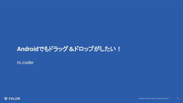 Copyright 2022 m.coder All Rights Reserved. 1 Androidでもドラッグ&ドロップがしたい! m.coder