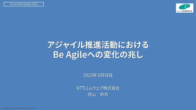 2022年6月17~18日に開催された『Scrum Fest Osaka 2022』 において登壇した「アジャイル推進組織と開発現場、それぞれの取り組みと変化」というセッションで私が担当した前半パート分の資料です。