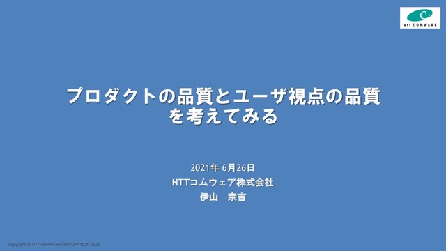 Copyright © NTT COMWARE CORPORATION 2021 プロダクトの品質とユーザ視点の品質 を考えてみる 2021年 6月26日