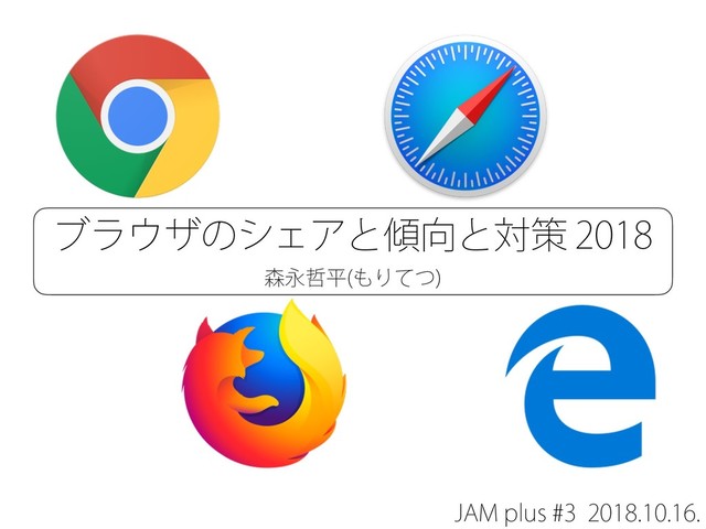 2018/10/16「JAM plus #3」でのセッション「ブラウザのシェアと傾向と対策 2018」のスライドです。