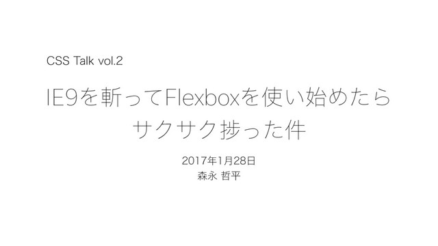 2017年1月28日「CSS Talk vol.2」でのセッション「IE9を斬ってFlexboxを使い始めたらサクサク捗った件」のスライドです。