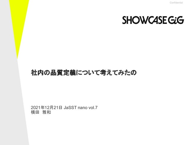 Confidential 2021年12月21日 JaSST nano vol.7 横田 雅和 社内の品質定義について考えてみたの