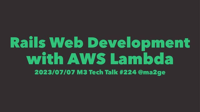 AWS Lambda Web Adapter • Lamby • Continue to use rails development skills • Code remains well-organized and keeps readability • Mitigate vendor lock-in