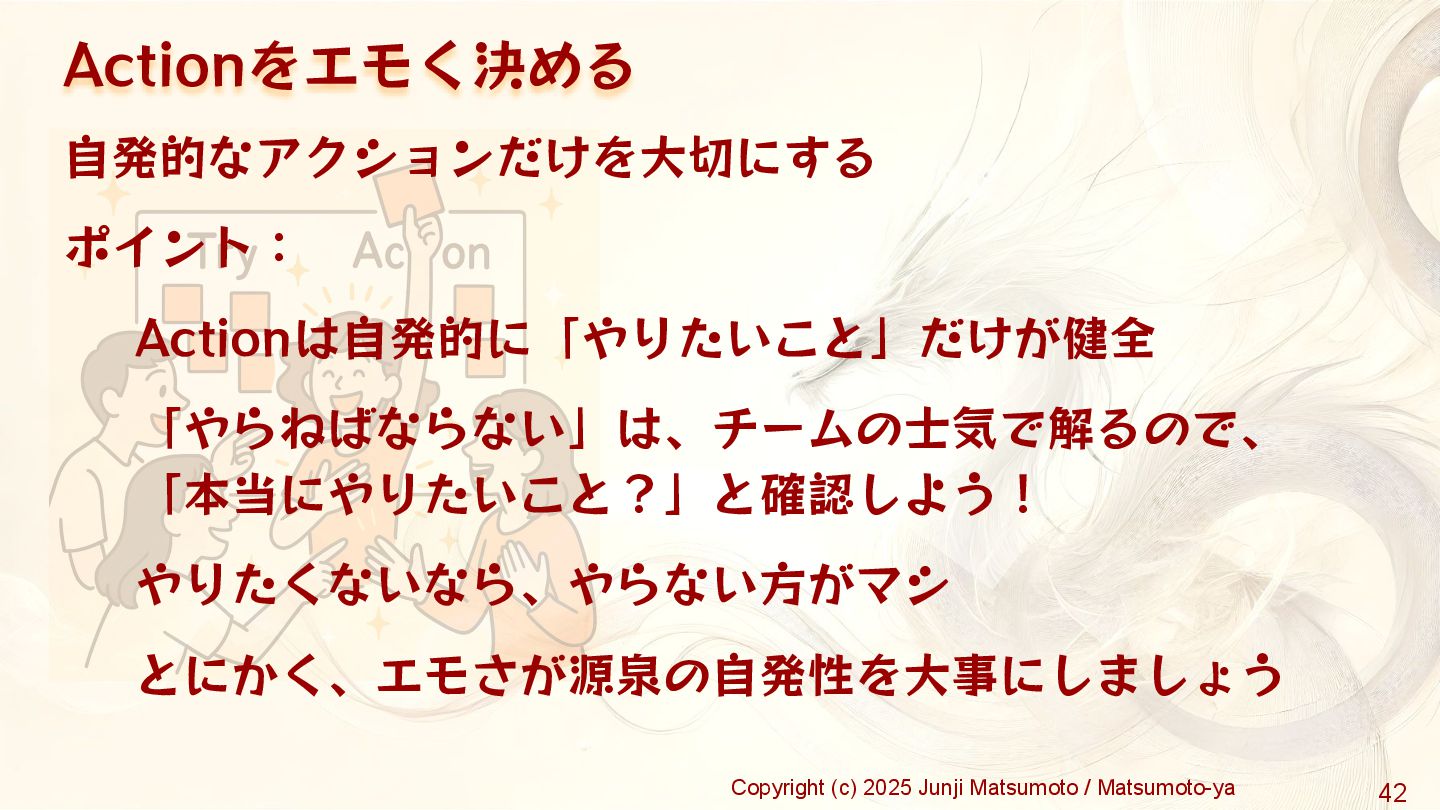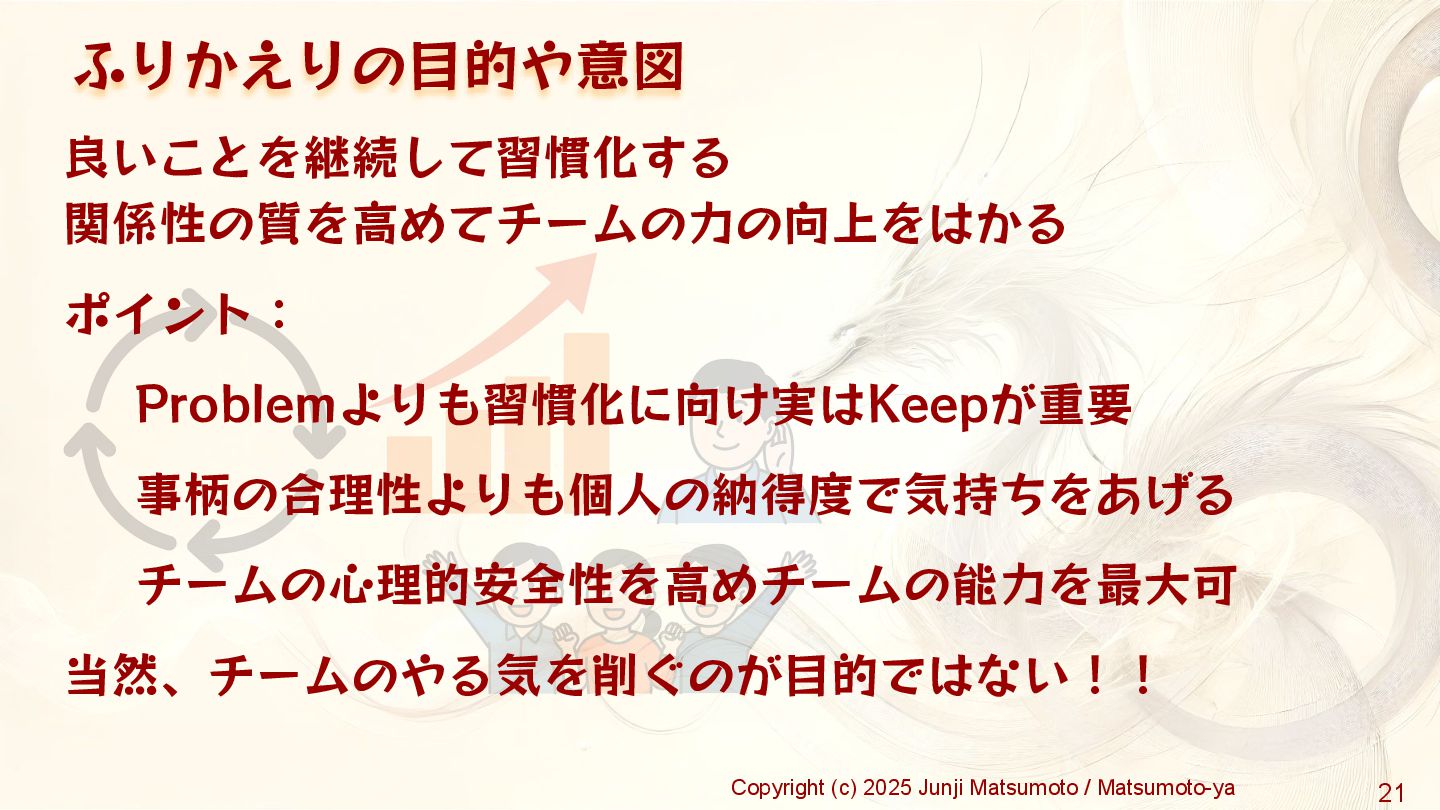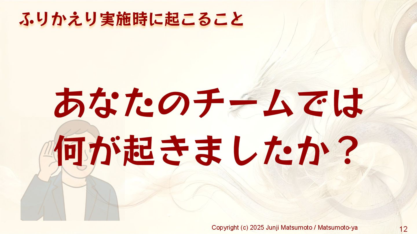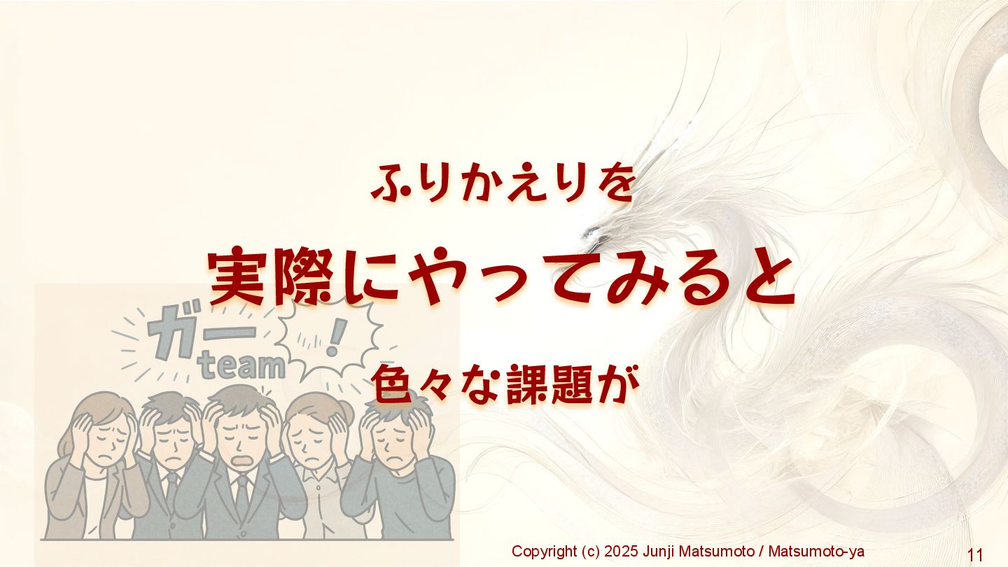 本来、ふりかえりではそのようなチームの課題が取り上げられ、どんどん改善していくための仕組みでありながら、やらねばならないことを生み出す辛い時間となり、逆に時間の無駄だから今週はスキップしましょう、辞めましょうと言われる始末です。