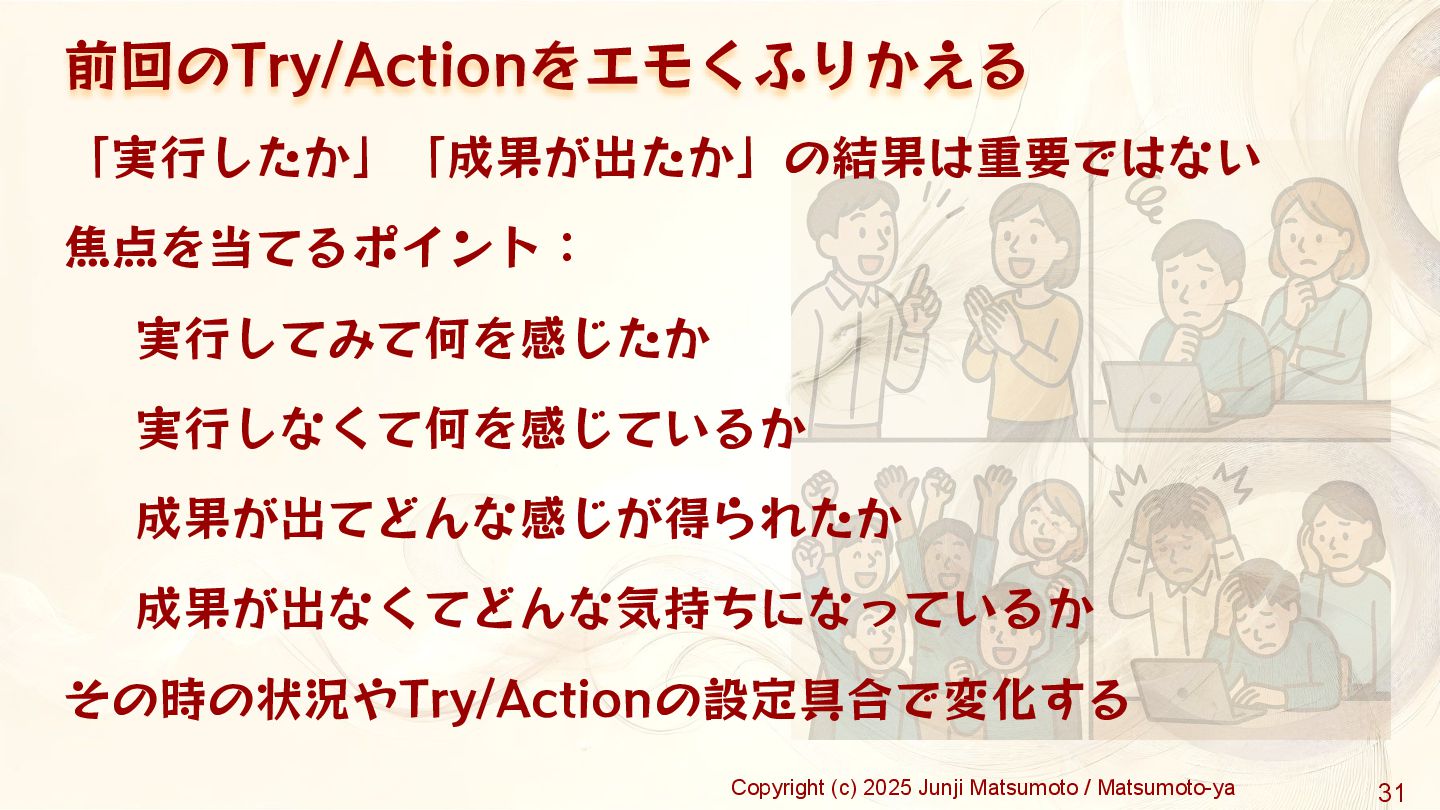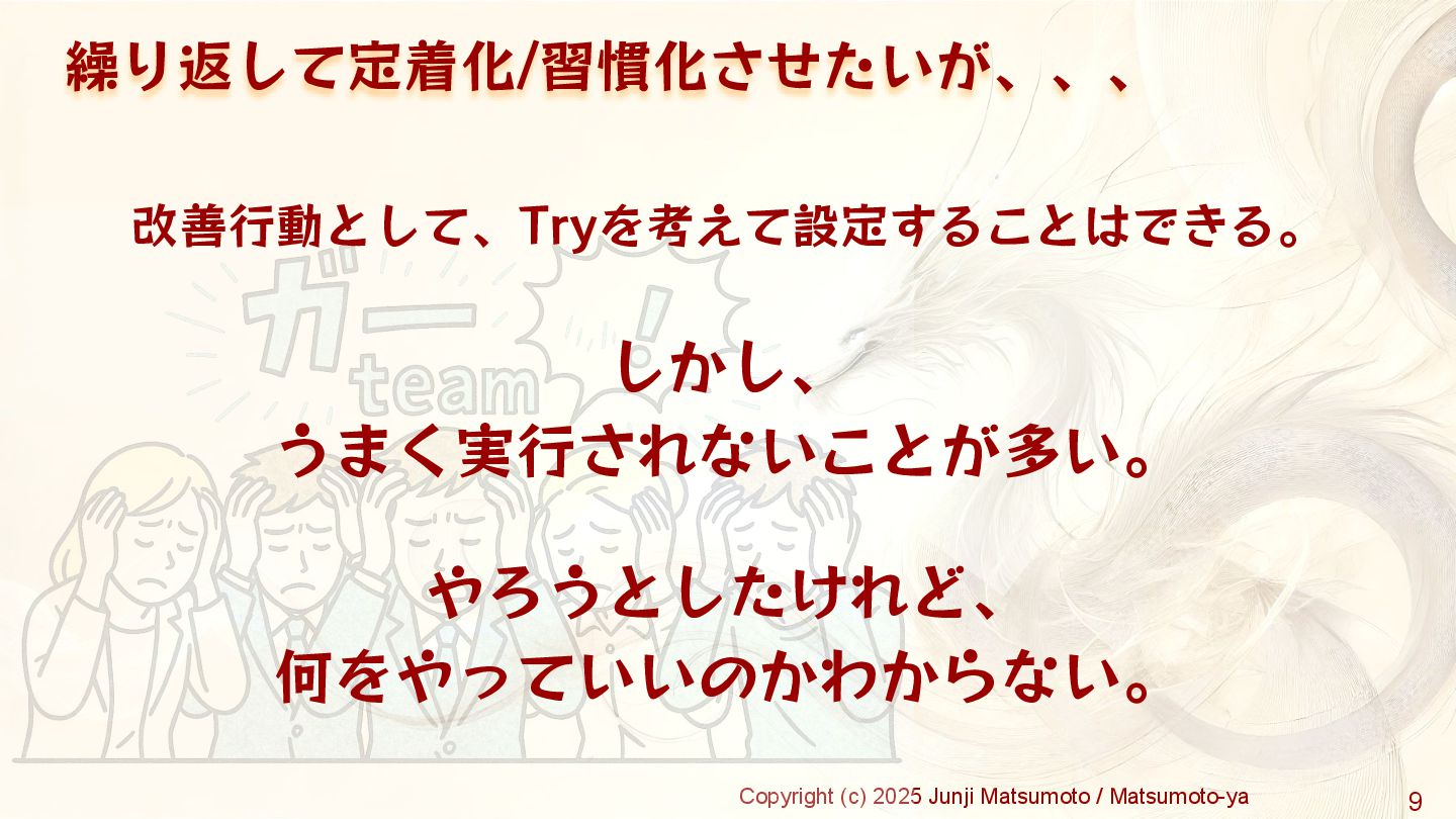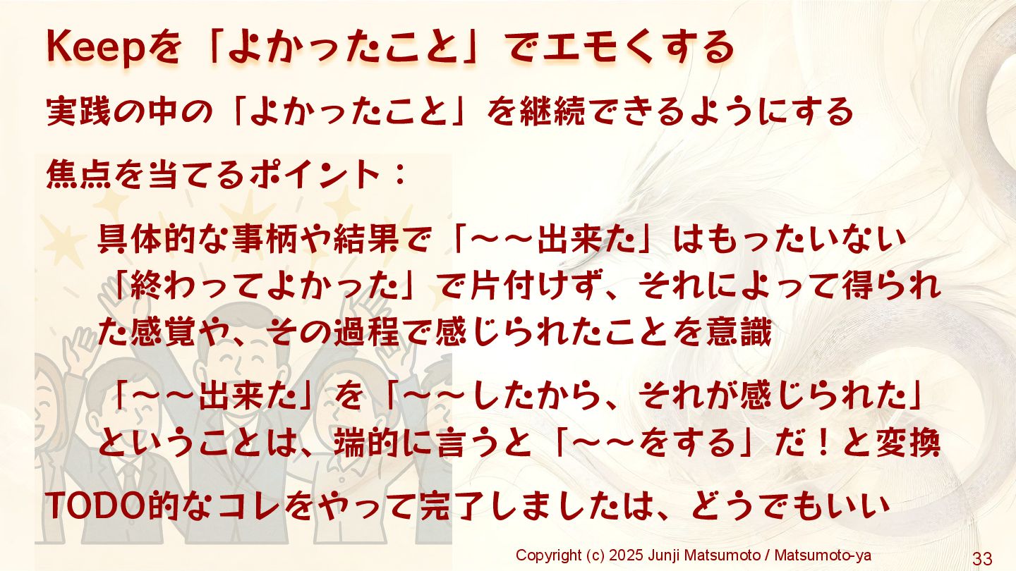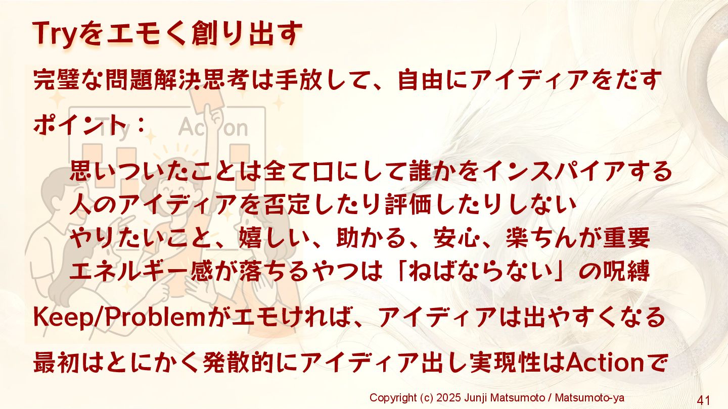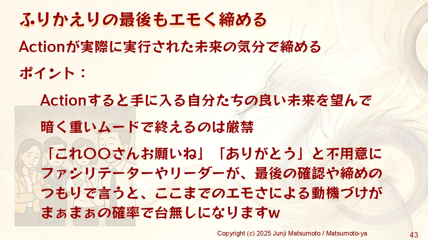 本来、ふりかえりではそのようなチームの課題が取り上げられ、どんどん改善していくための仕組みでありながら、やらねばならないことを生み出す辛い時間となり、逆に時間の無駄だから今週はスキップしましょう、辞めましょうと言われる始末です。