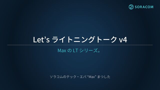Let’s ライトニングトーク v4 Max の LT シリーズ。 ソラコムのテック・エバ “Max” まつした